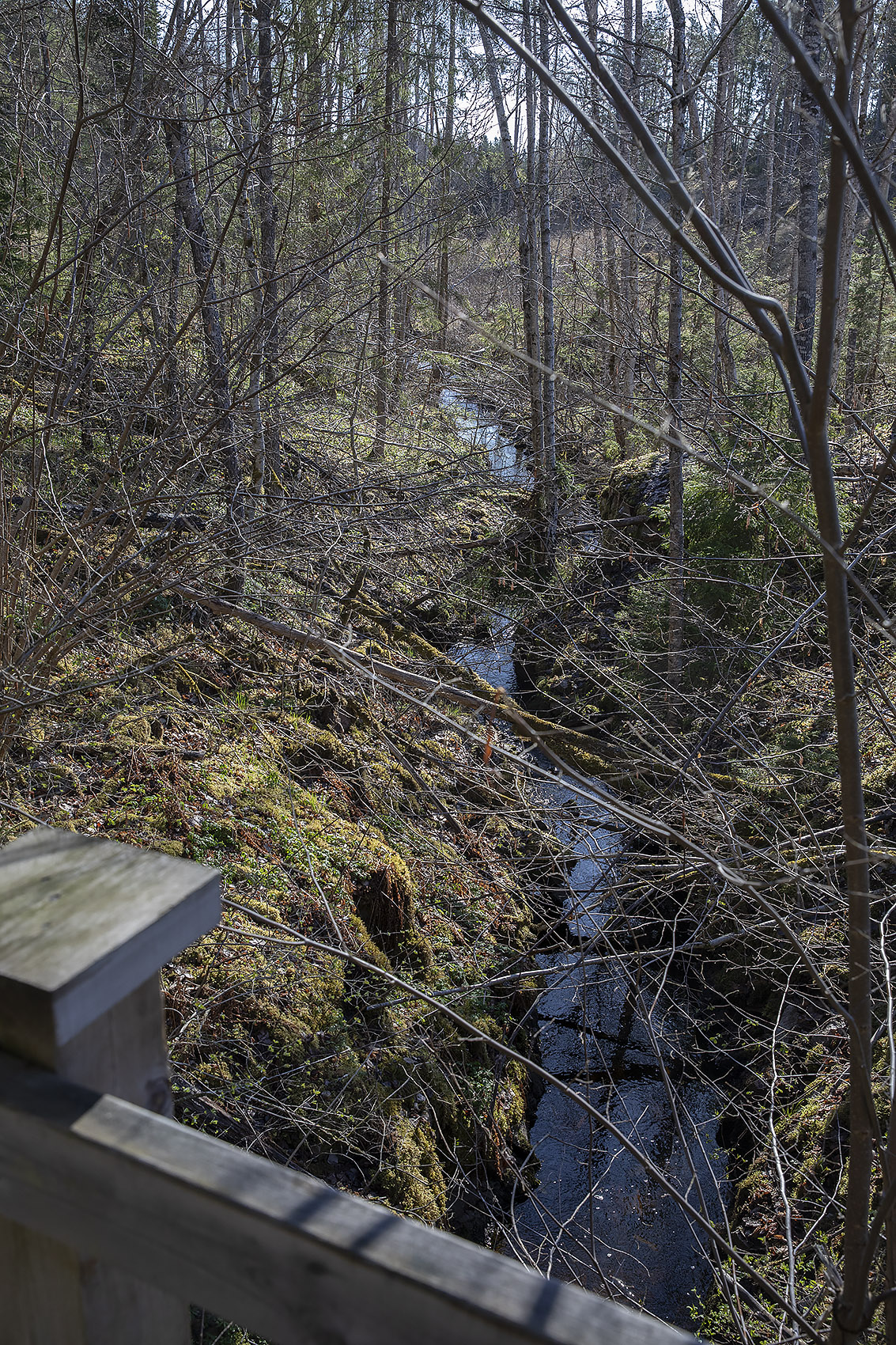 Hersbybro med ån från Hersen till Exarbysjön. Tyvärr väldigt mycket ris som ligger i ån.