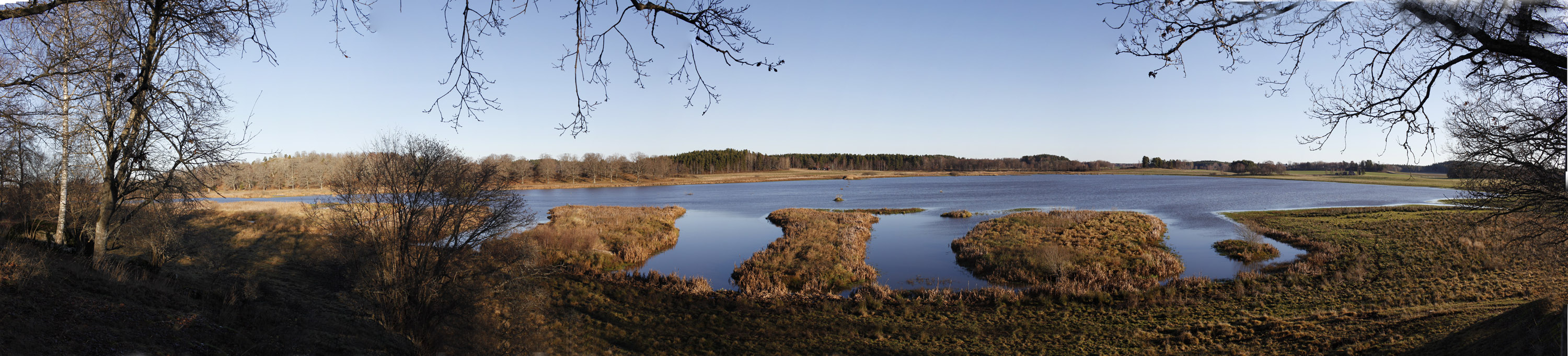 Vadsjön, Husby-Oppunda s:n, Sörmland. Taget från väster den 17 november 2013.. Vadsjön är en bra fågellokal, se Artportalen! Runt sjön går en vacker vandringsled, passa på att beundra utsikten från fornborgen på östra sidan!