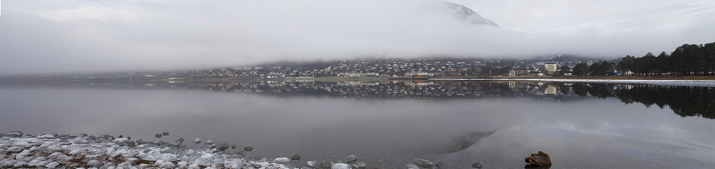 Panoramabild över Voss den 1 mars 2014.