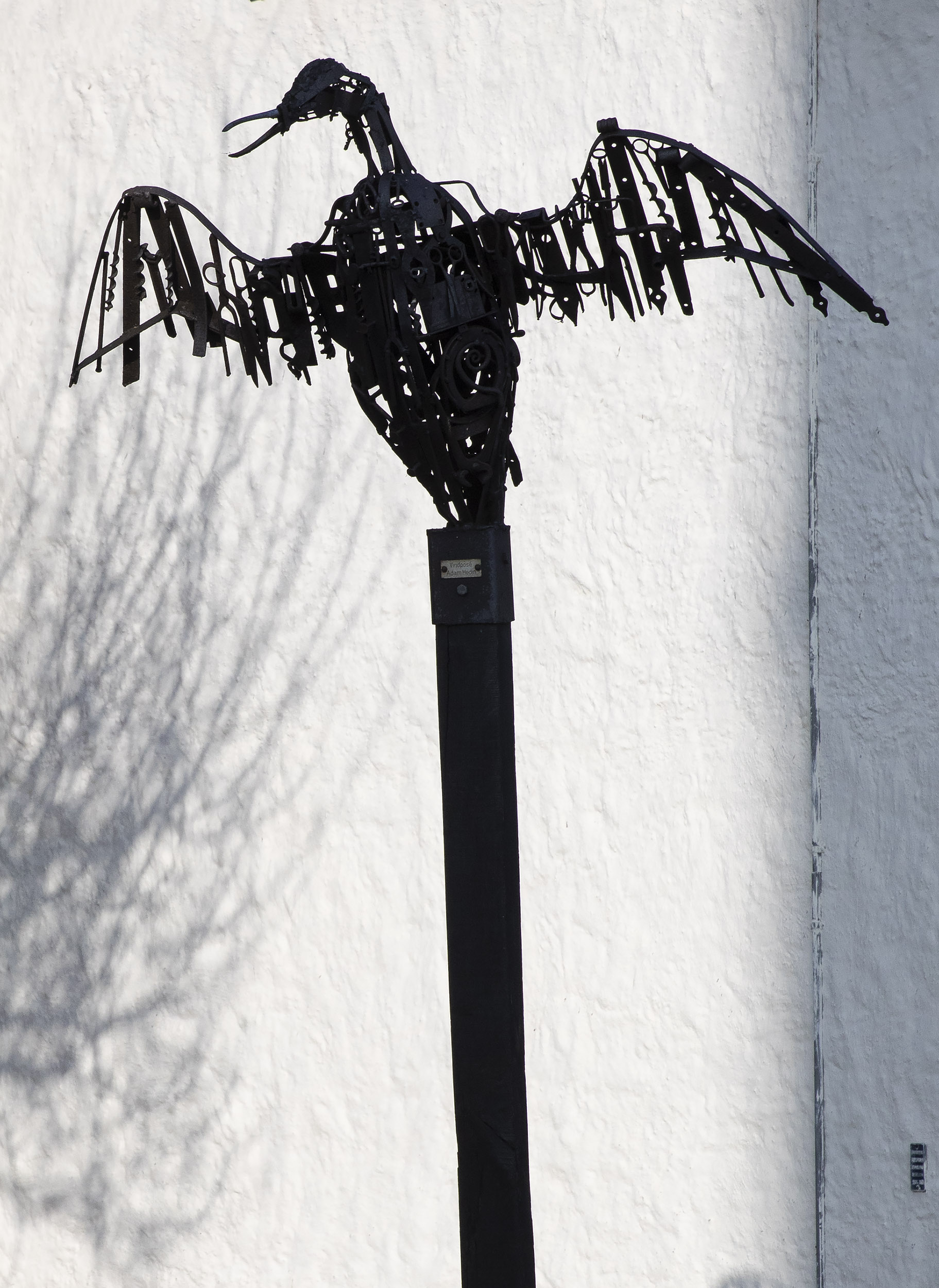 Adam Hedins storskarv har flugit upp på land intill Ottenby Naturum.