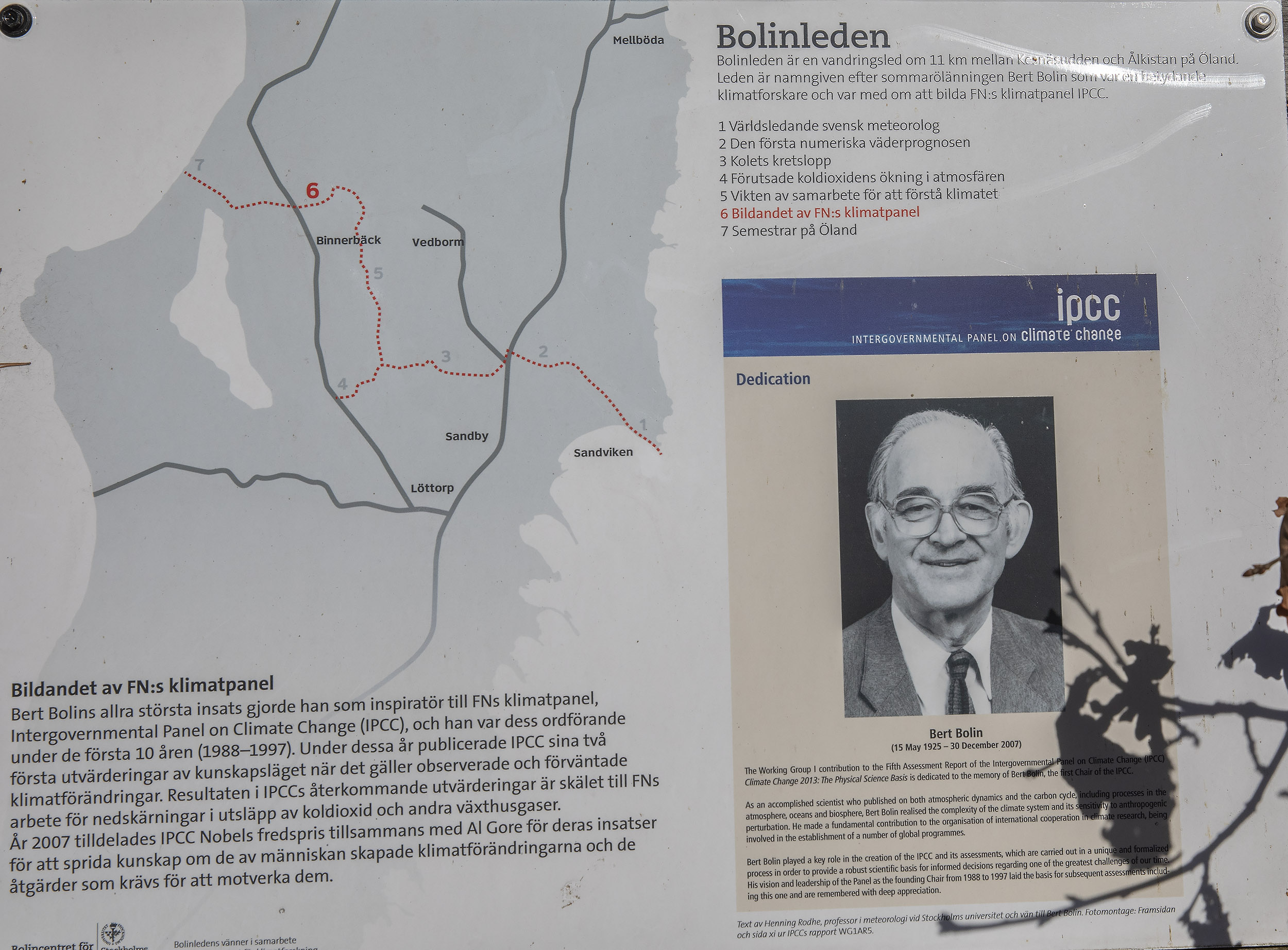 Information om Bolinleden, en vandringsled som märkts ut på norra Öland till minne av den framstående metereologen och klimatforskaren Bert Bolin. Han hade sommarhus i trakten.