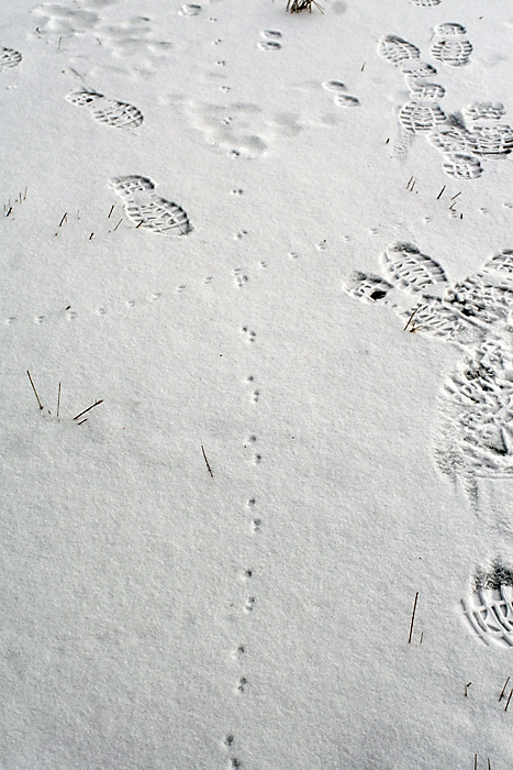Läs mer om spår i mina betraktelser Spår i snön , Lodjursspår i snön och Nya spår.