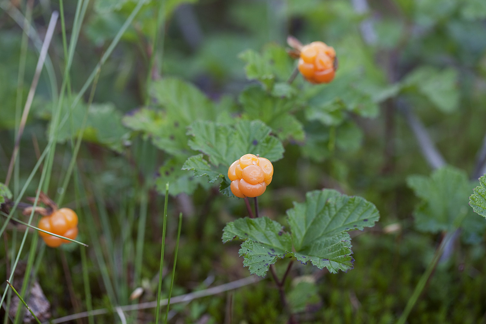 Bilder från Roslagen: Hjortronplockning. Några fler än så här blev det, men inte så värst mycket! Men lika roligt för det! 2014-07-18.