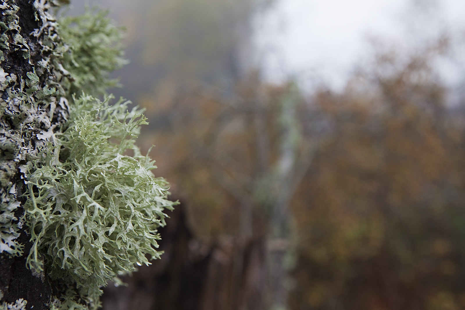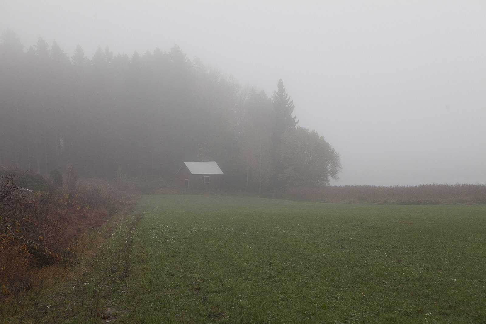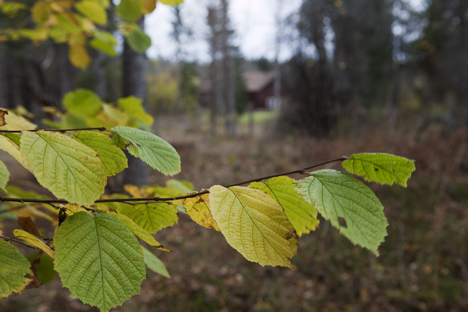 Jag går ännu en lång vandring på hembyns marker. Det är en stilla morgon med dimma och ett vackert, mjukt ljus, så bra att fota i. Det är med en stor glädje men också med ett visst vemod när alla minnena väcks till liv och ramlar över en. Jag tar bilder på ställen där jag plåtade för över fyrtio år sedan, och jämför. Ofta en trist historia eftersom så mycket har vuxit igen, övergivits eller älskats alltför hårdhänt med tunga maskiner som har kört sönder och huggit bort. Men i backarna vid Windholmen växer ännu hasseln och nu står löven, ja hela slänten, i gult. Vi är inne i de gula veckorna nu. Det är vackert och ännu vackrare blir det när jag litet senare hör nötkråkan, denna stiliga fågel, jag kommer att tänka på Sven Bertil Taube!, som alltid hördes under älgjaktsdagarna när de flög från hässlena upp mot den gamla skogen för att gömma sina nötter inför vintern. Nu är det mesta av gammelskogen borta, här som på de flesta andra ställen, och därför även nötkråkan. Men några finns alltså kvar! I skogskanten står en gammal bil inkörd, ett minne från kräftfiskets storhetstid, en av storbondmorans utrangerade fläskdroskor. Det stod en till uppe på berget, men den åkte i sjön en natt för många år sedan. Nu är den sådär patinerat vacker som bilvraken blir när de får stå övergivna i skogen i många år; att fota skrotbilar har blivit en egen riktning inom samtidsfotografin och någon av bilkyrkogårdarna har tom blivit k-märkt! Den här bilen står ensam och påminner mest om hur stort kräftfisket en gång var, liksom byträtorna kring det och skvallret som påstod att bondmoran gick ner till sjön med filten under armen tillsammans med A., ungkarlen från granngården. Detta byskvaller som nu sätts på pränt, med en viss skadeglädje måste jag erkänna eftersom de utpekade tillhörde fiendesidan i byn.