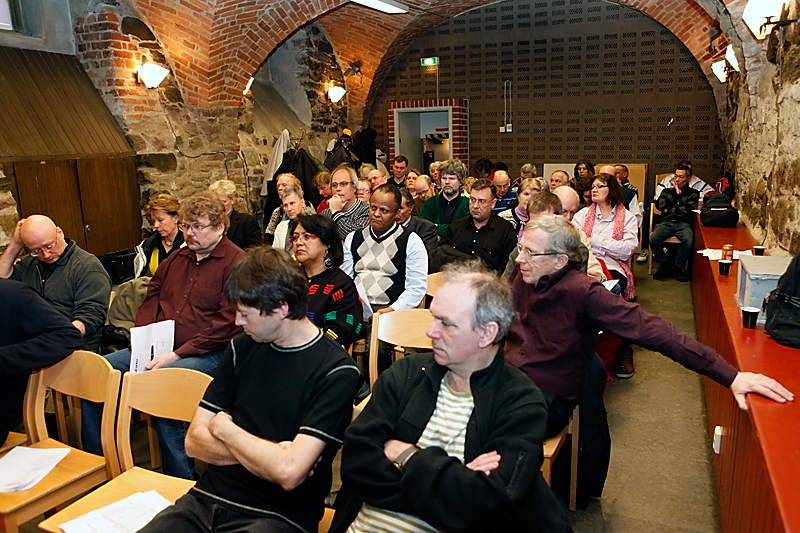 Hans Willnerth, närmast kameran, deltog flitigt i debatten.