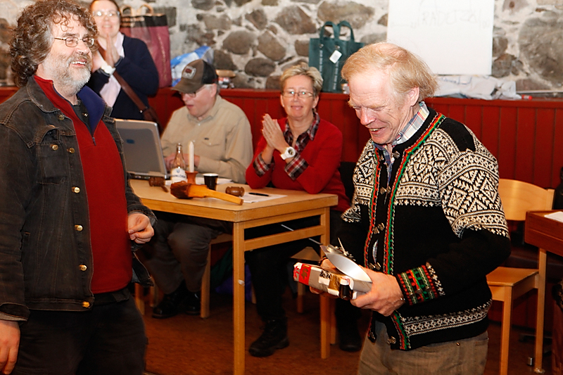 Nyblivne pensionären Stig Bramsäng avtackas.