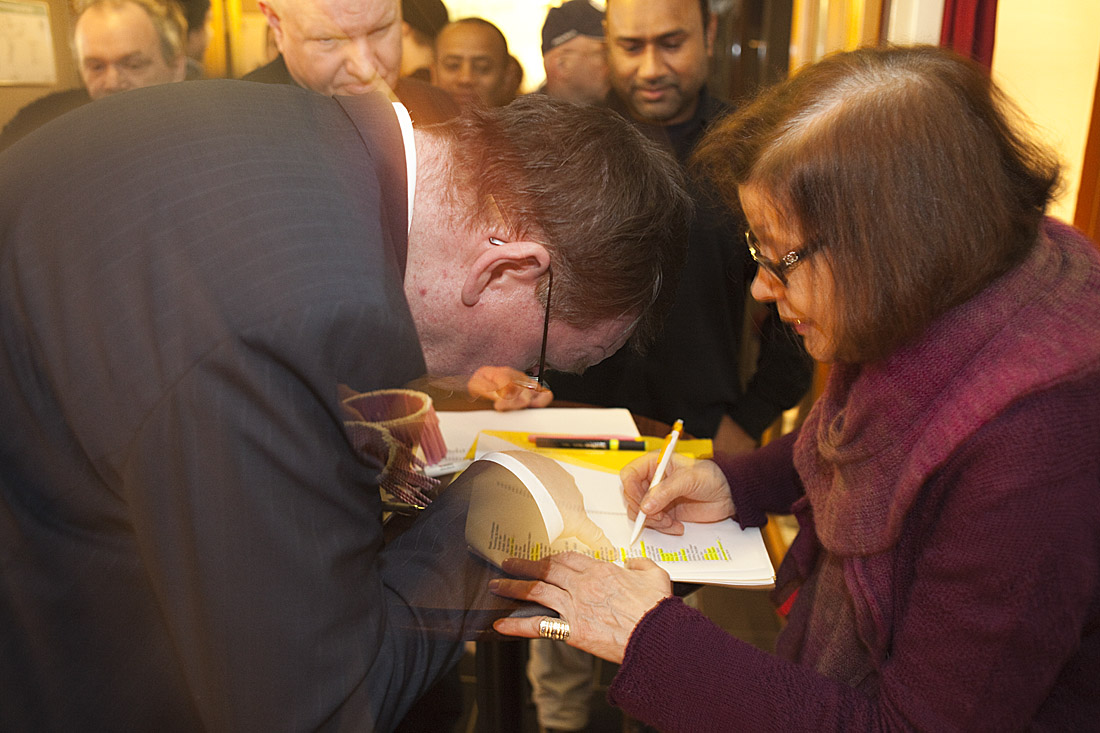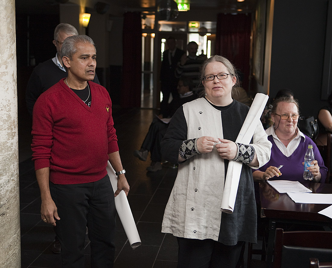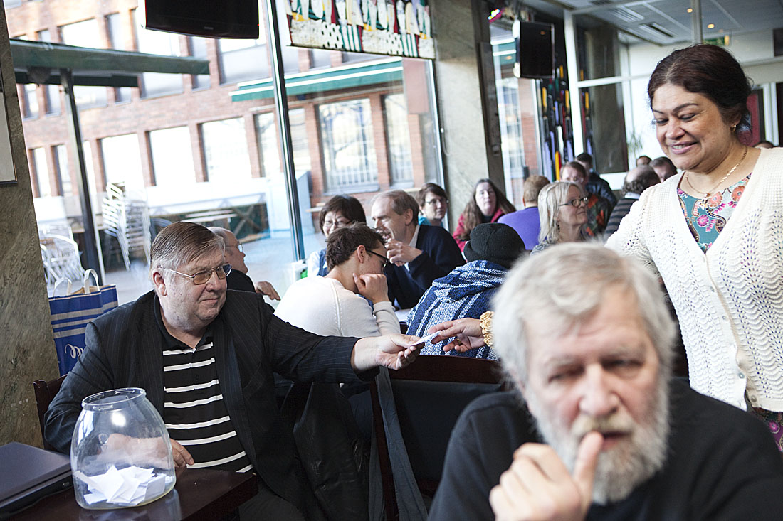 Avprickarnas arbetsmiljö borde fått en 6:6a ... Mikael Ström och Raili Kalliovaara letar efter namn på den finstilta röstlängden.