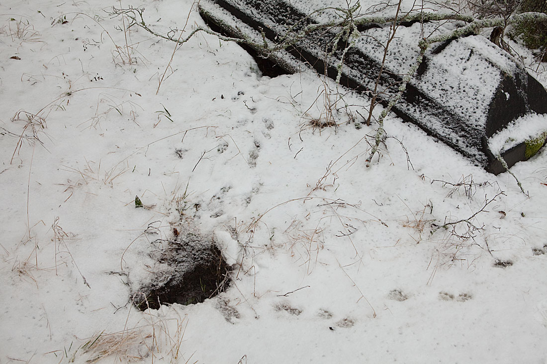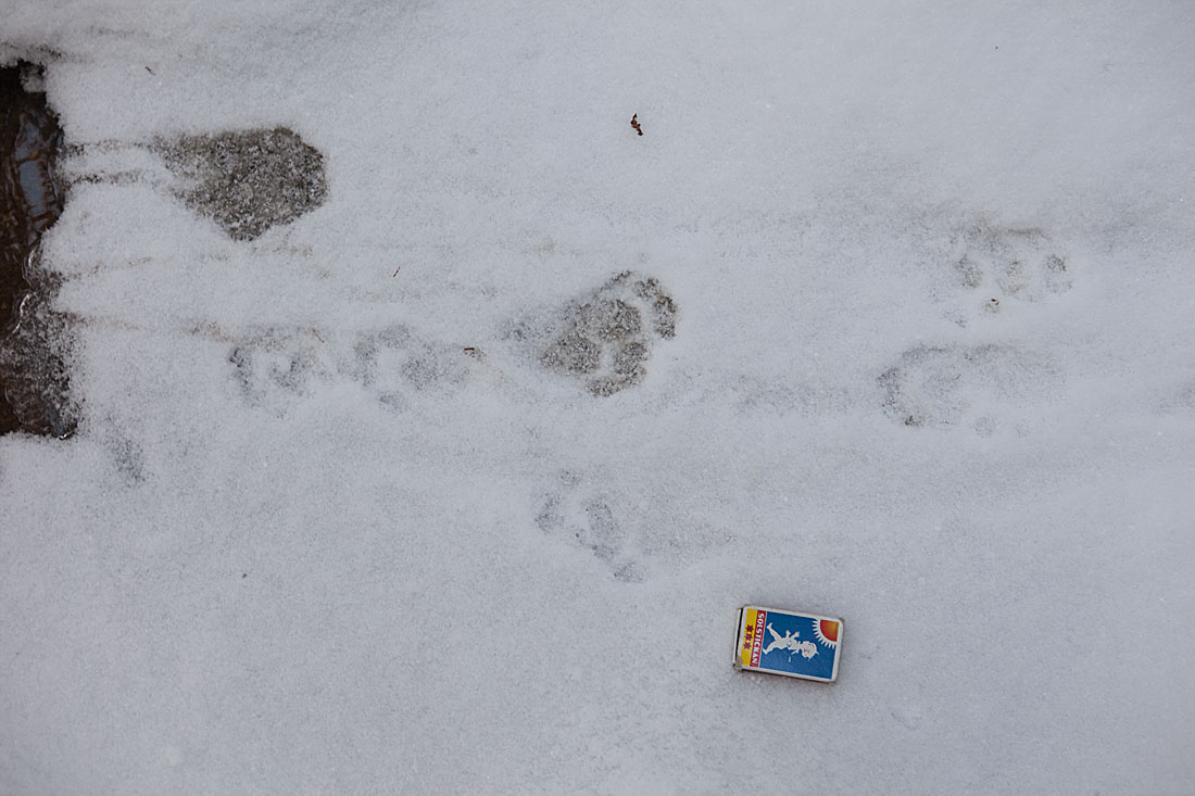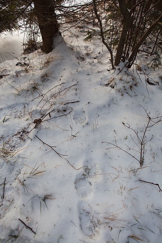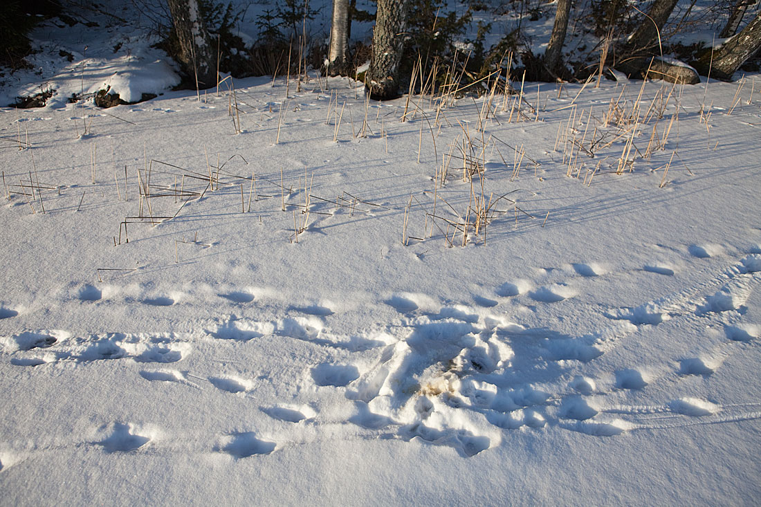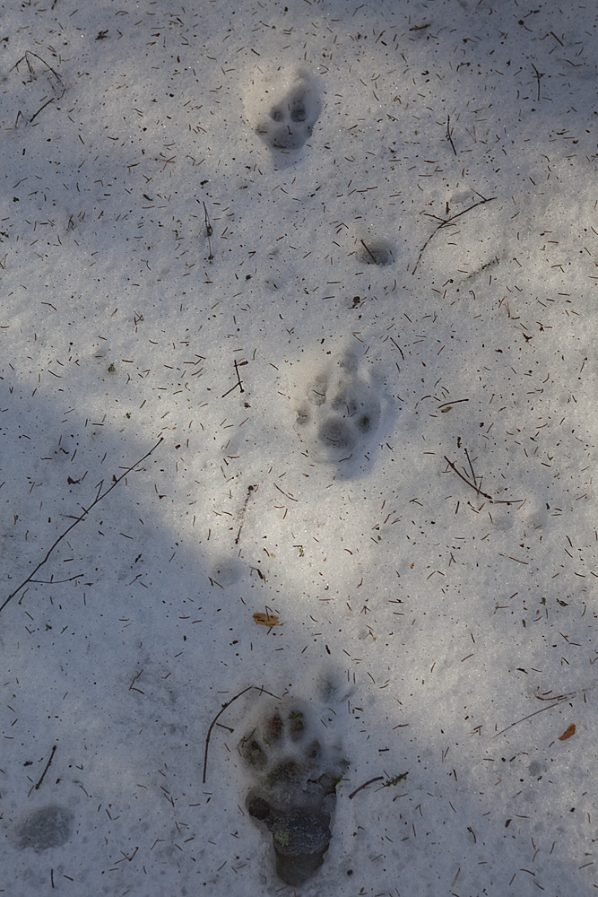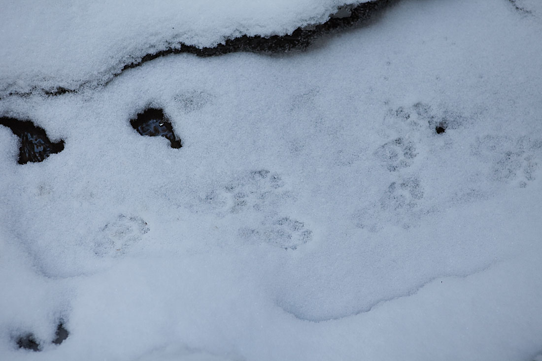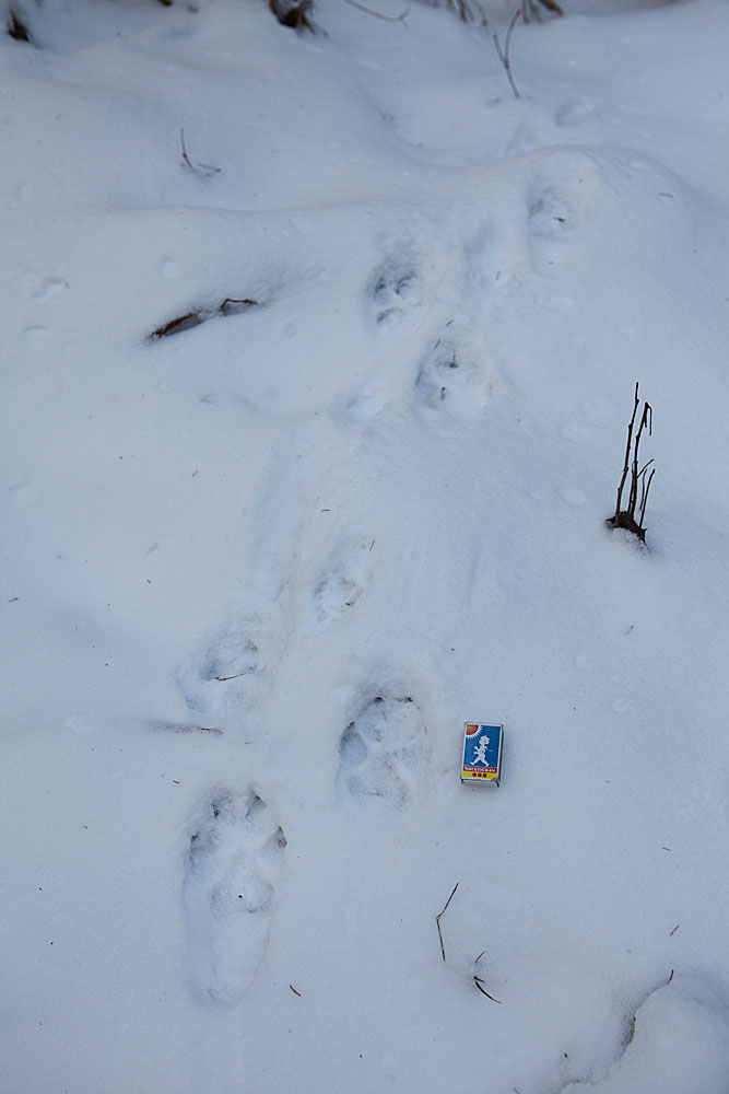 ... och en gång till. Hannen hade pinkat på varje sten som stack upp ur isen längs sjökanten.