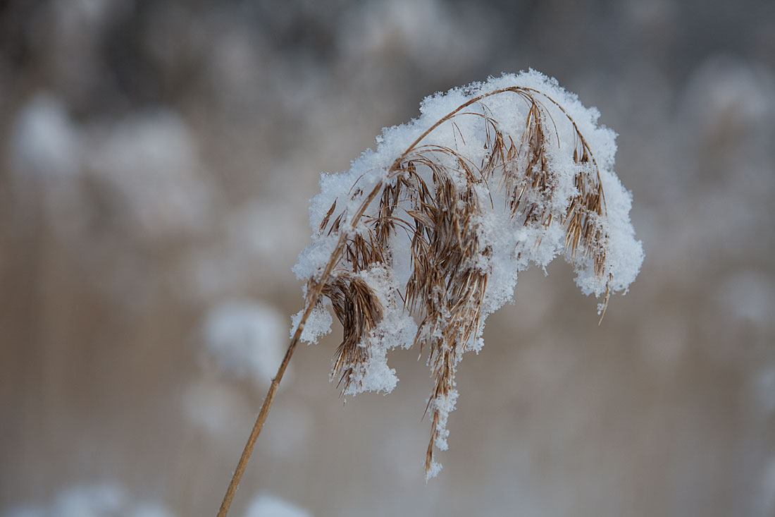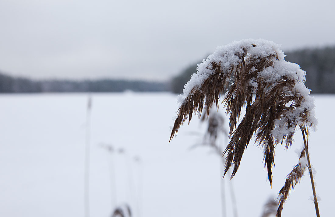 En flock (?) fåglar har hoppat omkring på snön under vassvipporna.