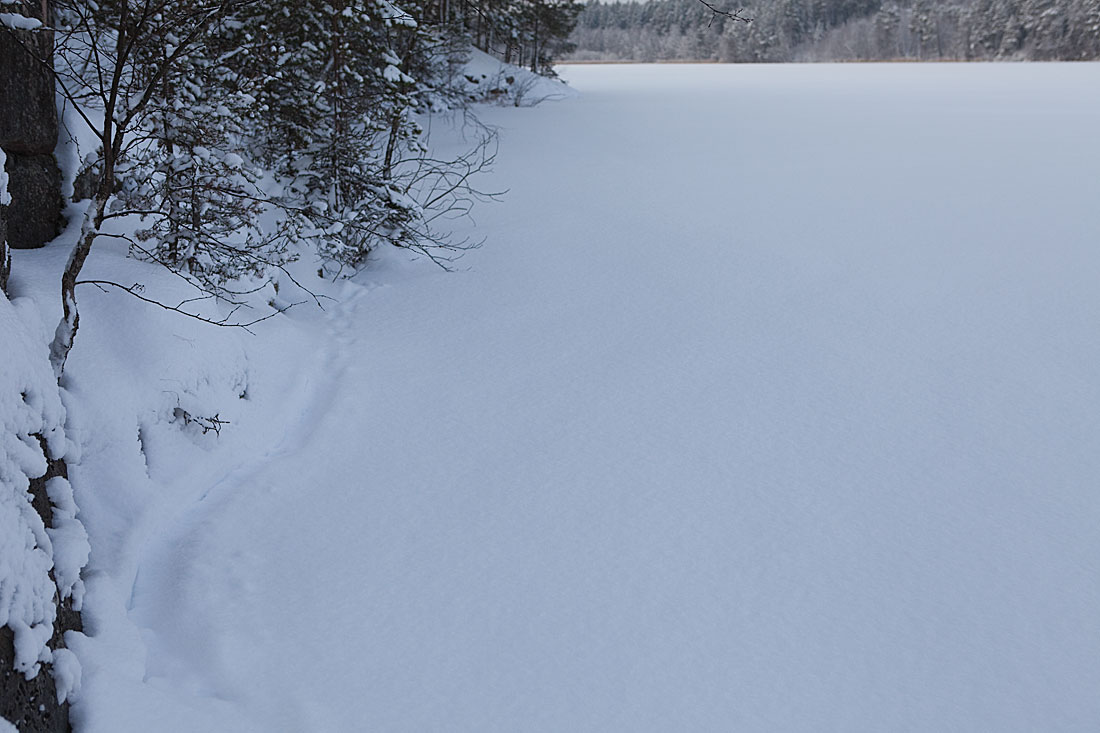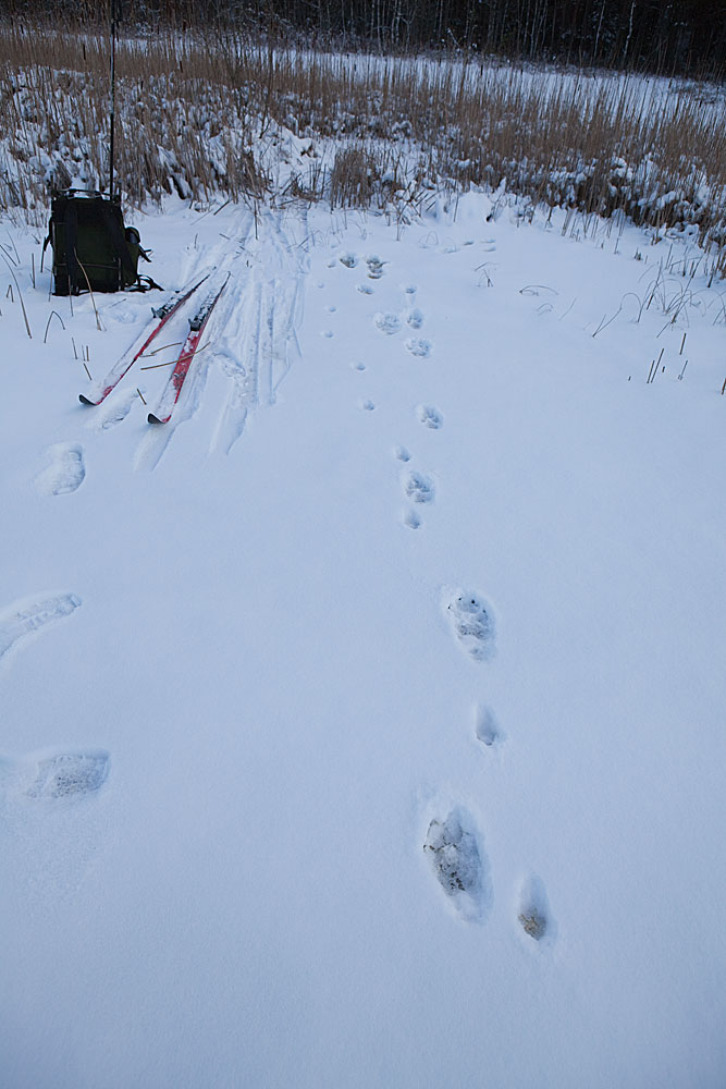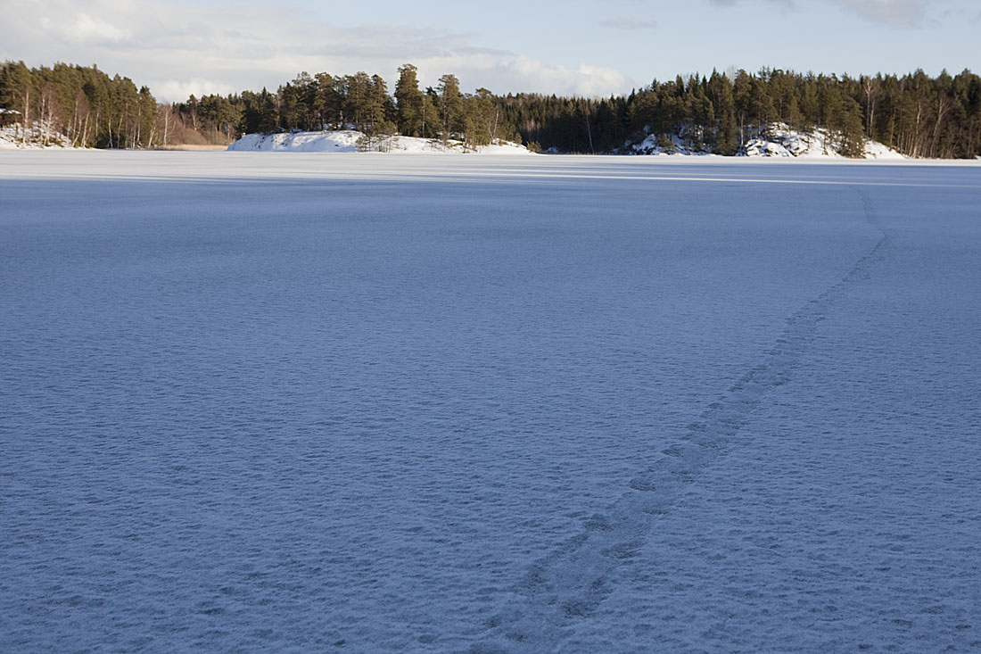 .. och på något ställe plogat upp ett spår i snön. Men inte som på uttrars vis åkt kanan nedför någon bergssida, men därmot sprungit långa sträckor en bit upp på land.