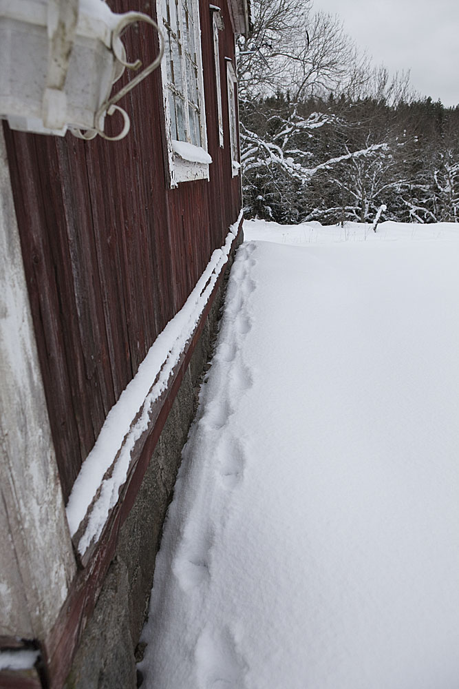 ... fram till närmaste grannens hus. Där hade den på lodjurs vis nosat längs husväggarna (det hade den även gjort vid den andra grannens hus, har sett det beteendet även tidigare, letar de efter möss och sorkar?) för att sedan fortsätta västerut ...