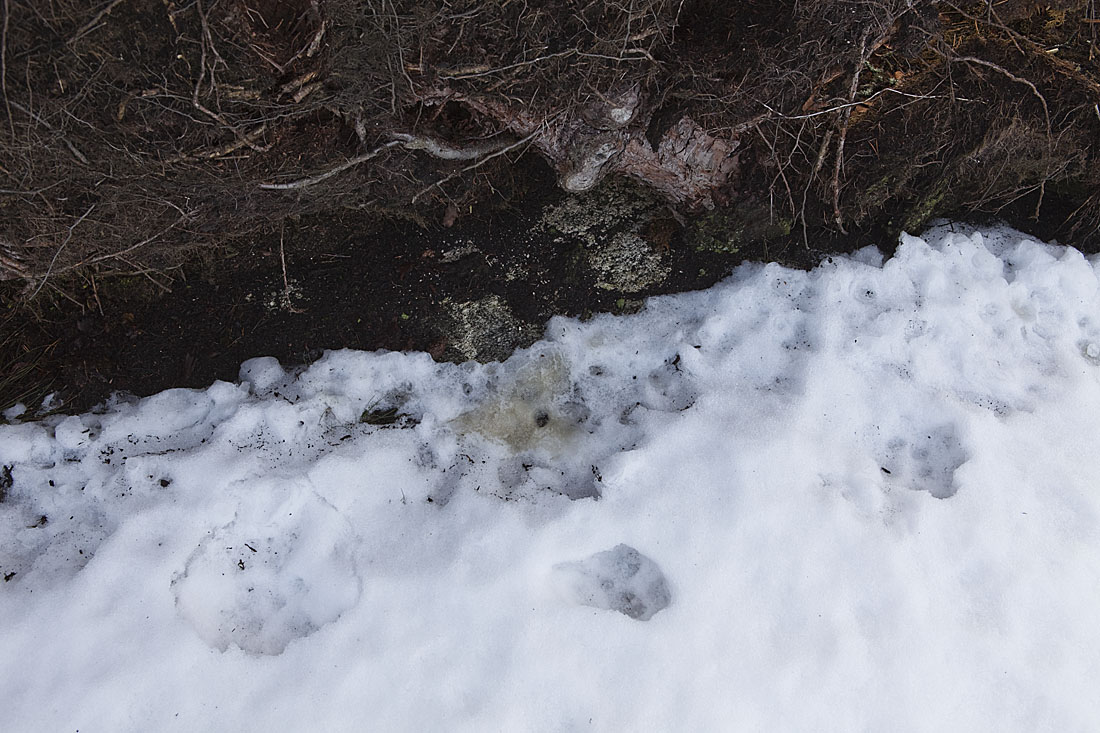Här har den gått fram till en rotvälta och markerat revir?