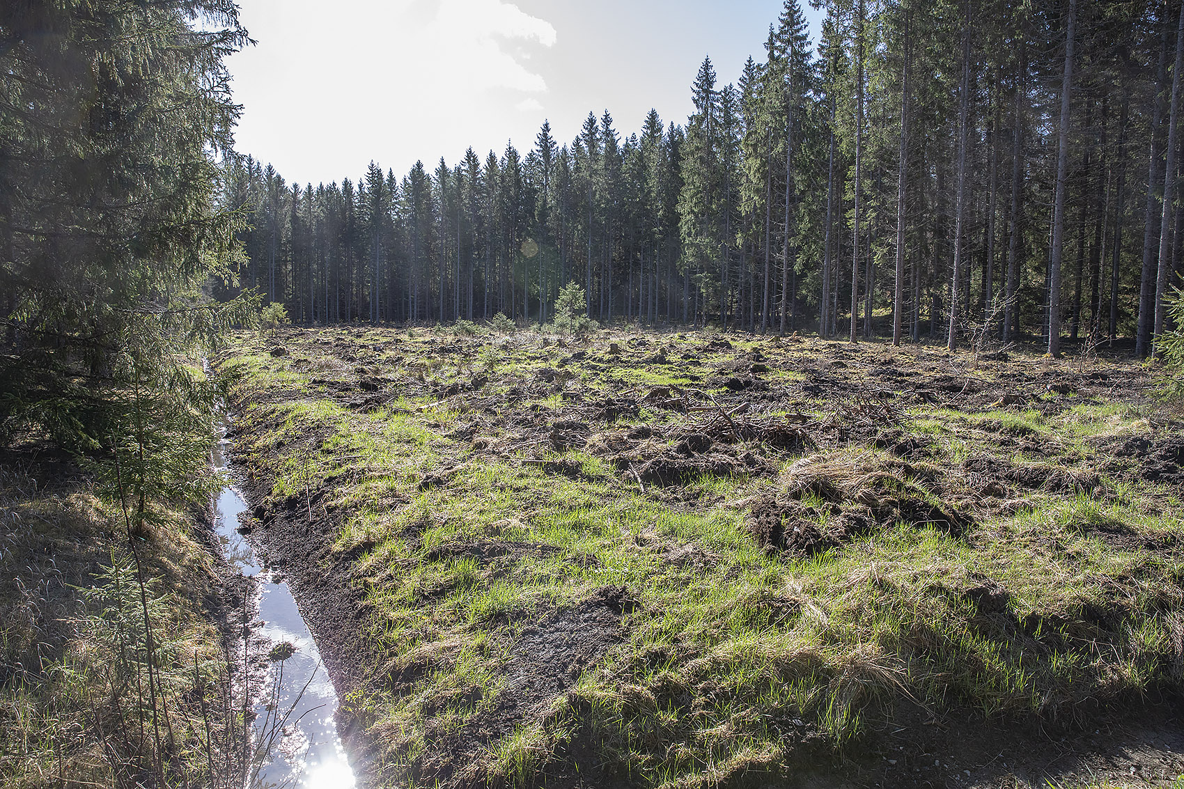 En lucka i granplanteringen i Hersbysvackan, antagligen pga ett barkborreangrepp.