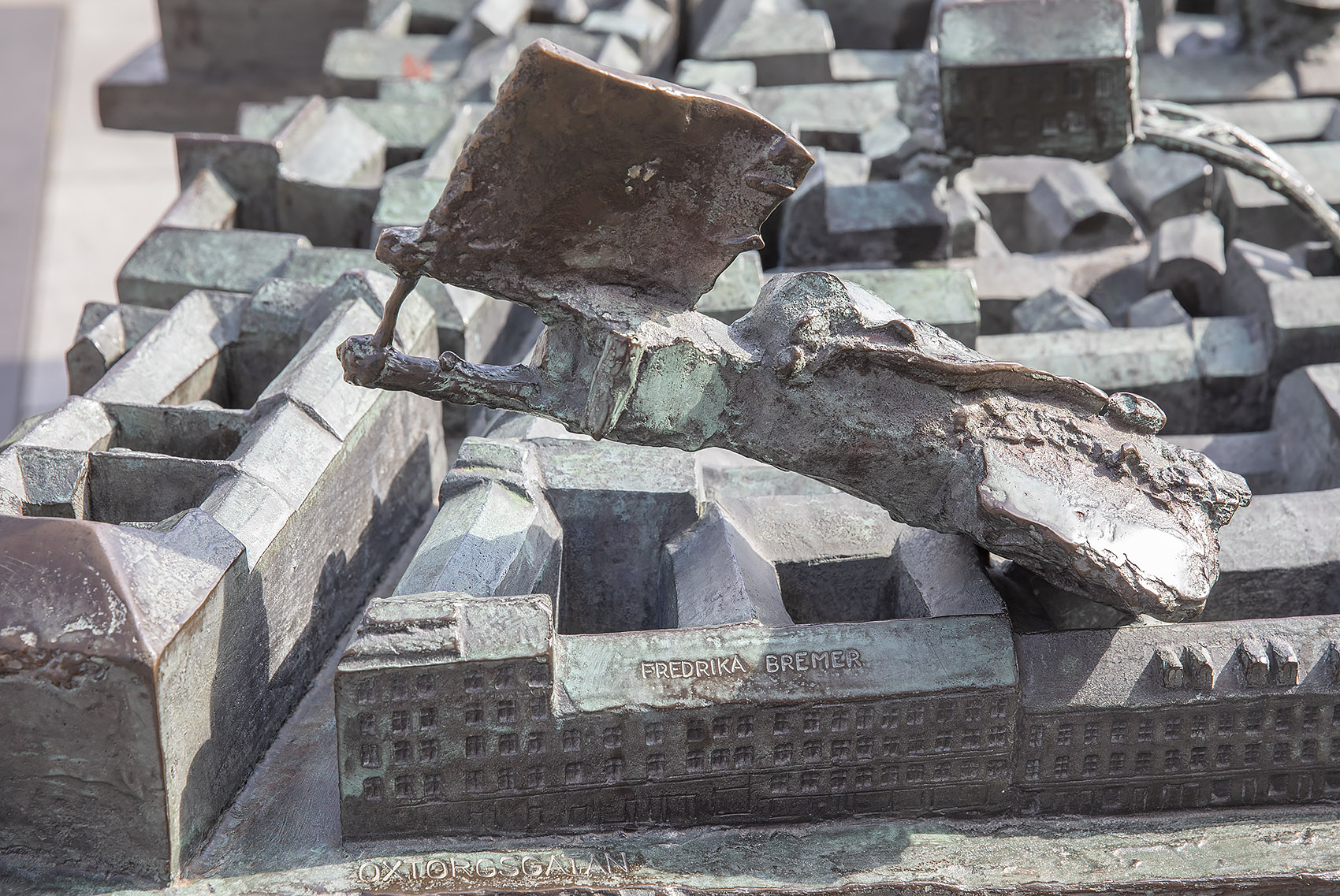 Fredrika Bremer i brons vid Sergels torg. Hon kämpade på sin tid för kvinnors rättigheter -- idag demonstrerade vi för Palestina!