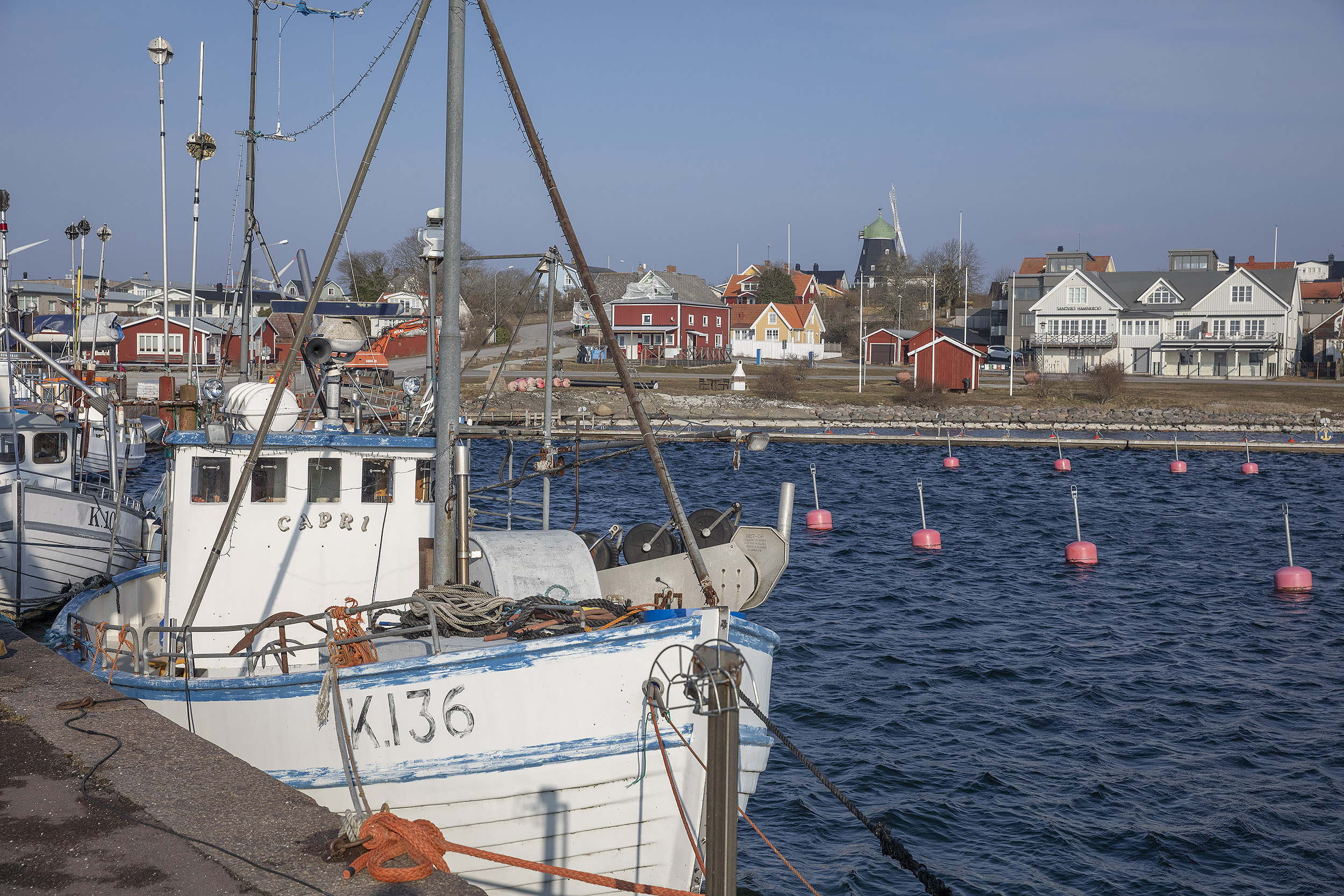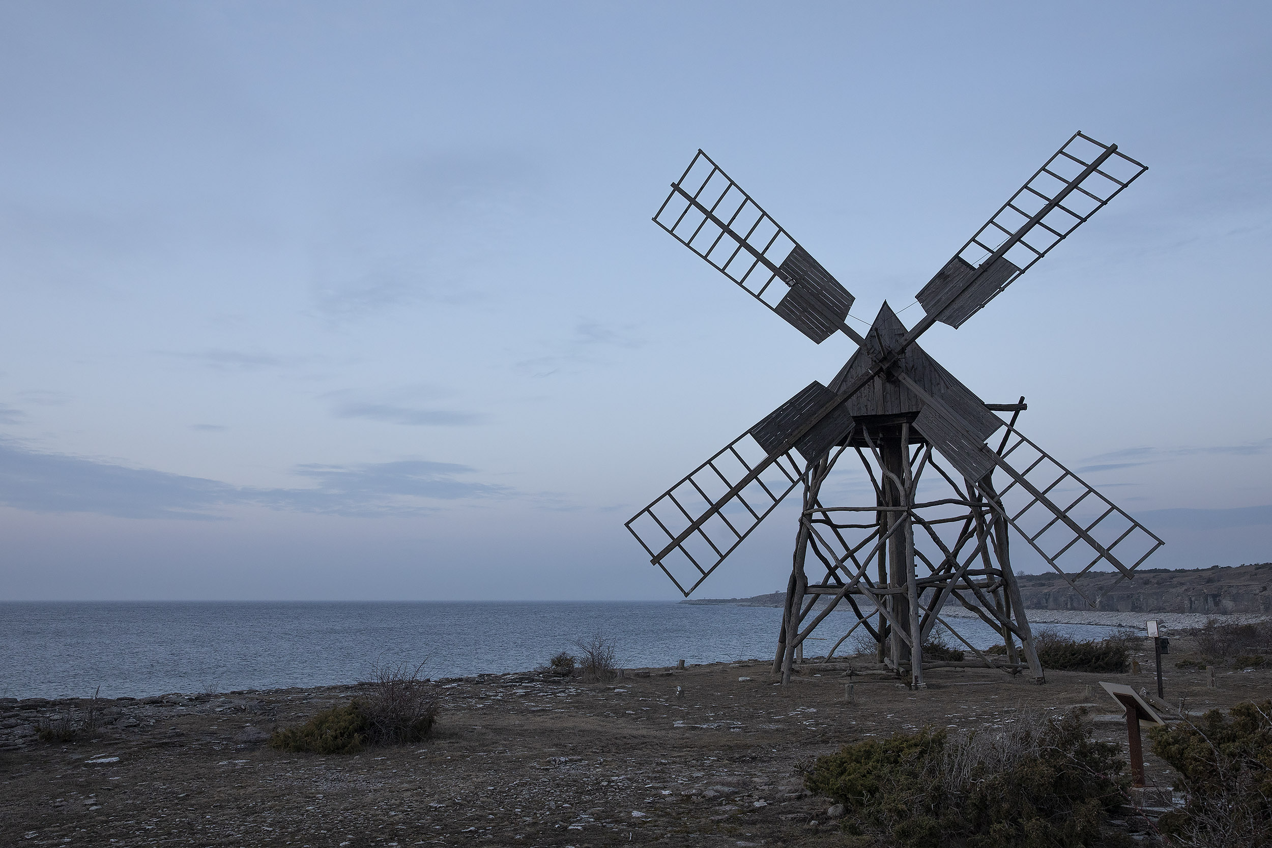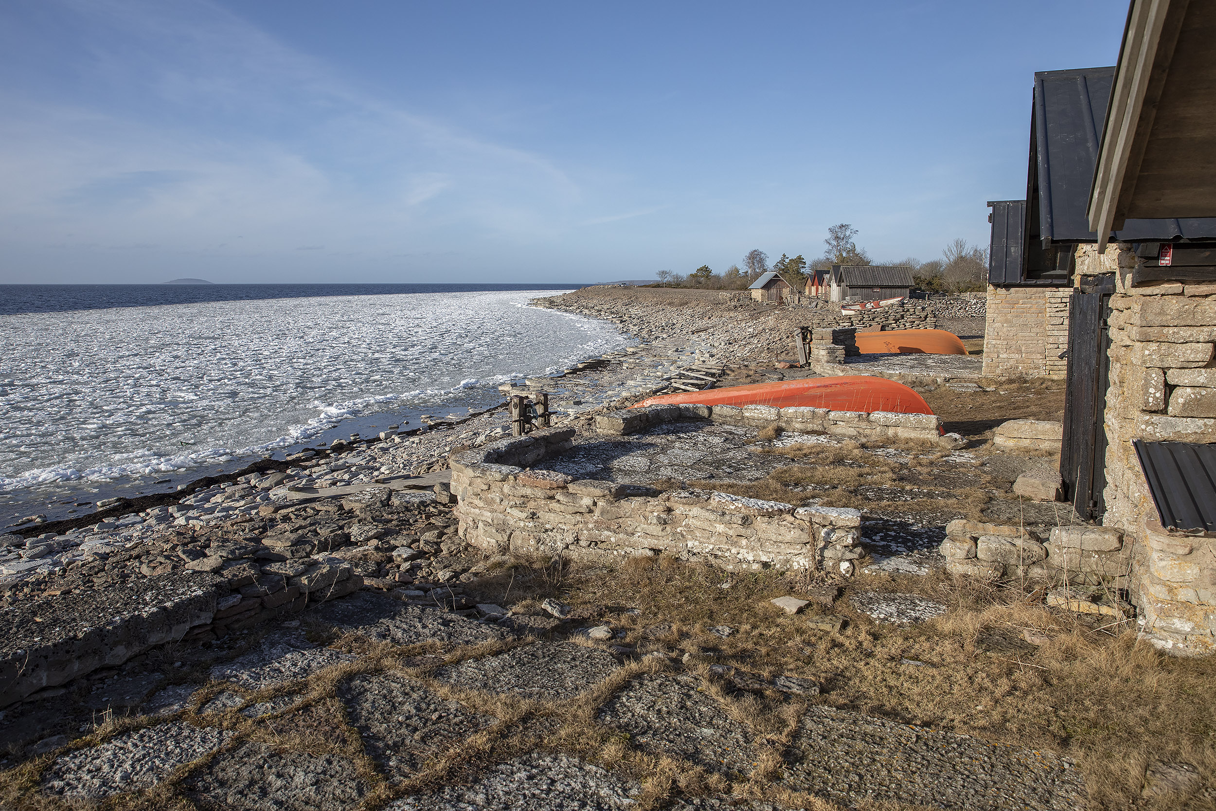 Isen i Kalmarsund hade blåst in mot land på nordvästra Öland. Blå Jungfrun i fonden.