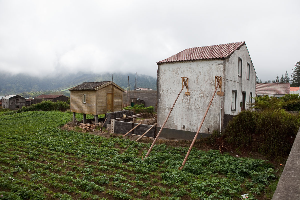 Husen är nästan alltid byggda av lavastenen, som det här lilla huset i Sete Cidades. Det ser litet övergivet ut och kanske är det ett "emigranthus", någon har emigrerat och lämnat huset ...