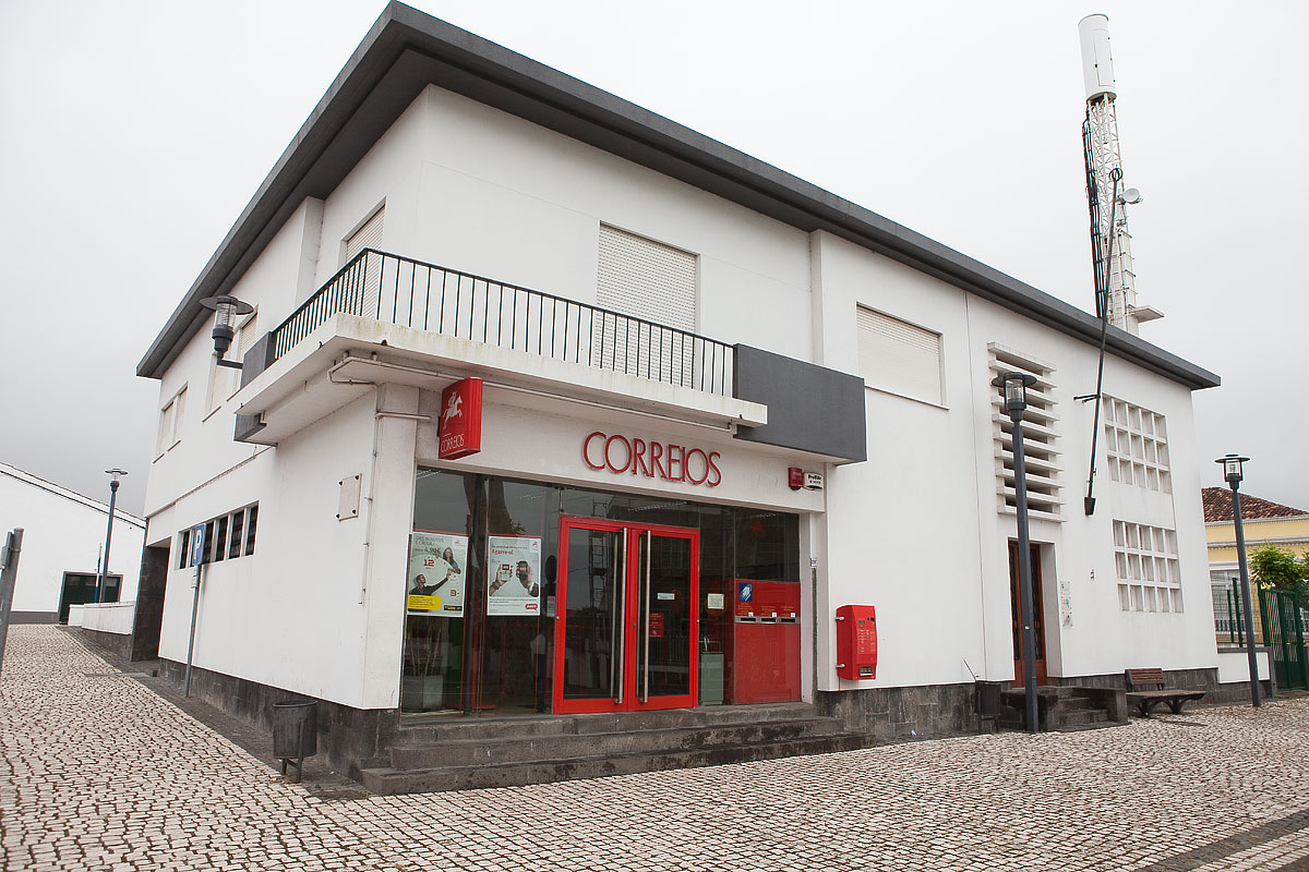 Till sist några ord om Posten på Azorerna. I Portugal finns det fortfarande riktiga postkontor i samhällena, i alla fall på San Miguel, den största ön i Azorerna. Här ser vi posten i Lagoa på sydkusten.