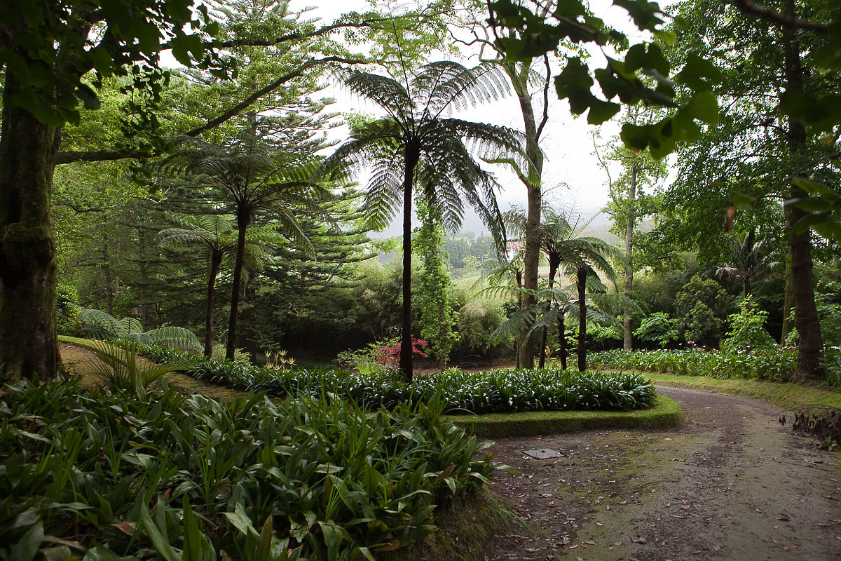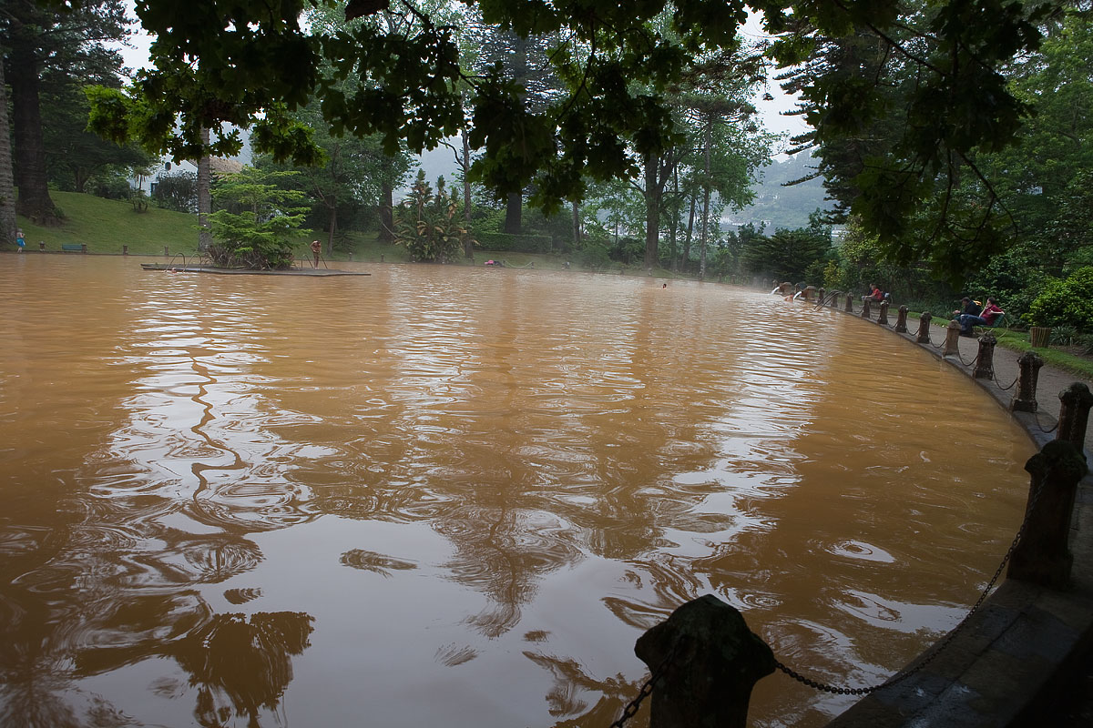Nere vid norra kusten sken solen och det var varmt; men dimman låg kvar när vi kom upp i bergen och utsikten över Lagoa das Furnas var obefintlig. Nere i staden var det litet bättre, men grått och lätt regn emellanåt. Så skönt då med ett bad i varmt vatten från de heta källorna, mitt inne i staden i den stora och berömda parken Terra Nostra.