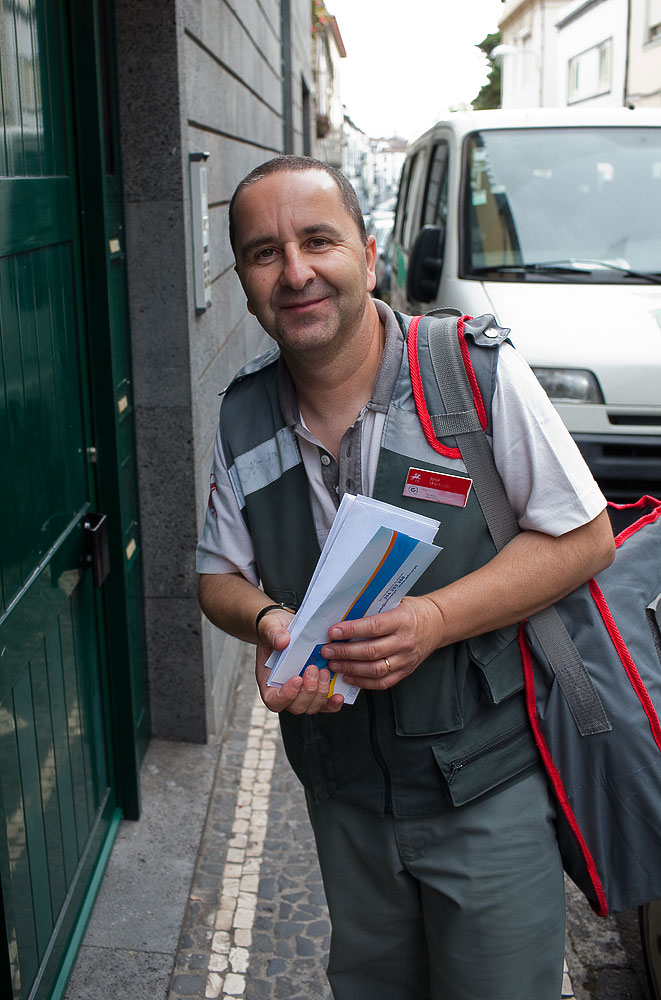 Vi pratade några ord med en brevbärare inne i Porta Delgada. Han var 46 år och har jobbat som stadsbrevbärare i 22 år: "jag kan alla gator och hus och känner alla människor", som han sade. Han gillade jobbet, "men det har blivit sämre, allt!". Han frågade vad en svensk brevbärare, som är lika gammal och har arbetat lika länge som honom, tjänar. Litet drygt 2.000 euro, svarade jag. Han skakade på huvudet och skrattade: själv har han ungefär hälften. Även sjukförmånerna har blivit sämre. Tidigare var det enkelt och billigt att gå till en företagsläkare när man blev dålig, nu är det krångligare med en massa papper och dessutom har det blivit dyrare. Pensionsåldern är 65 år, sade han, och slog ut med händerna: men vem vet vad den är den dag jag kommer dit...
