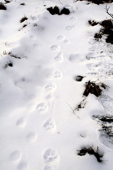 Läs mer om spår i mina betraktelser Spår i snön , Lodjursspår i snön och Nya spår.