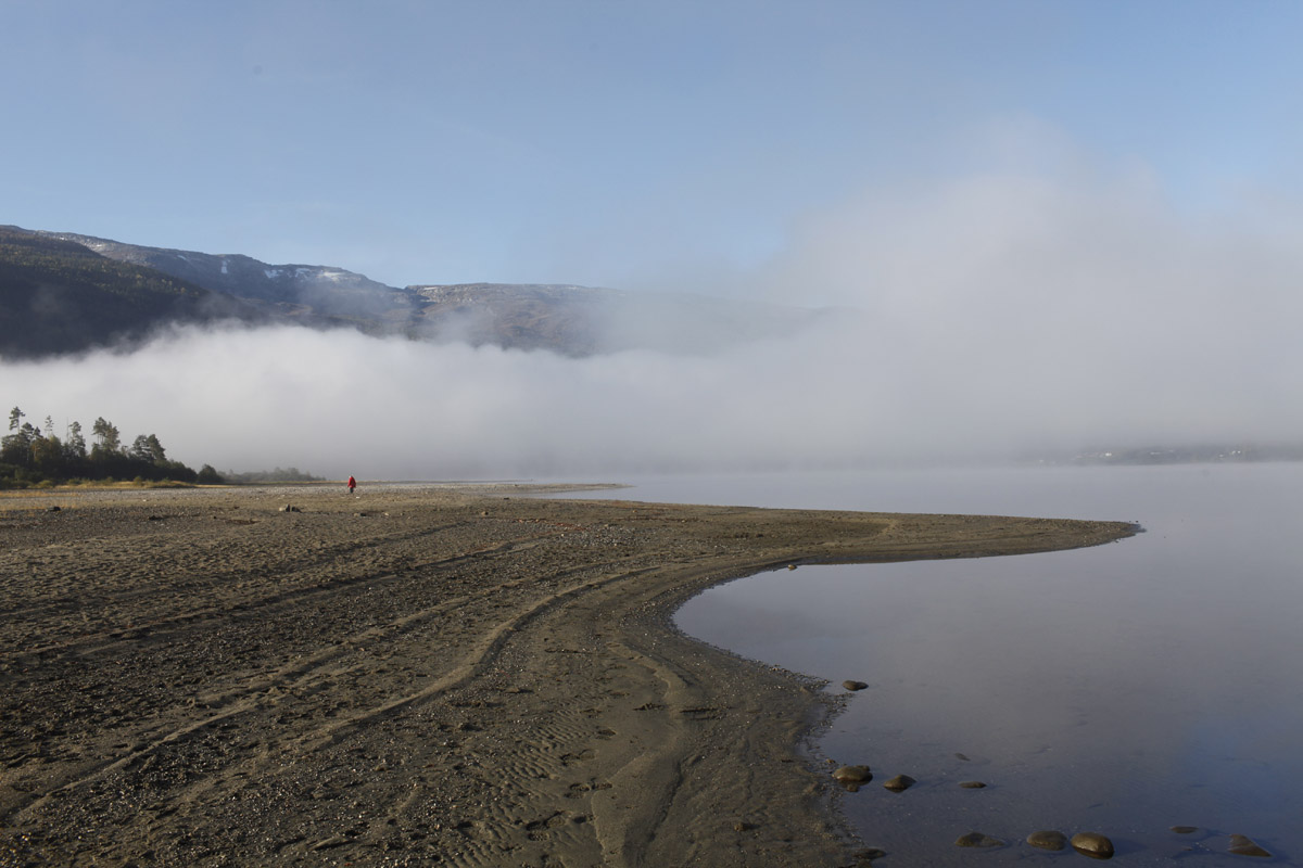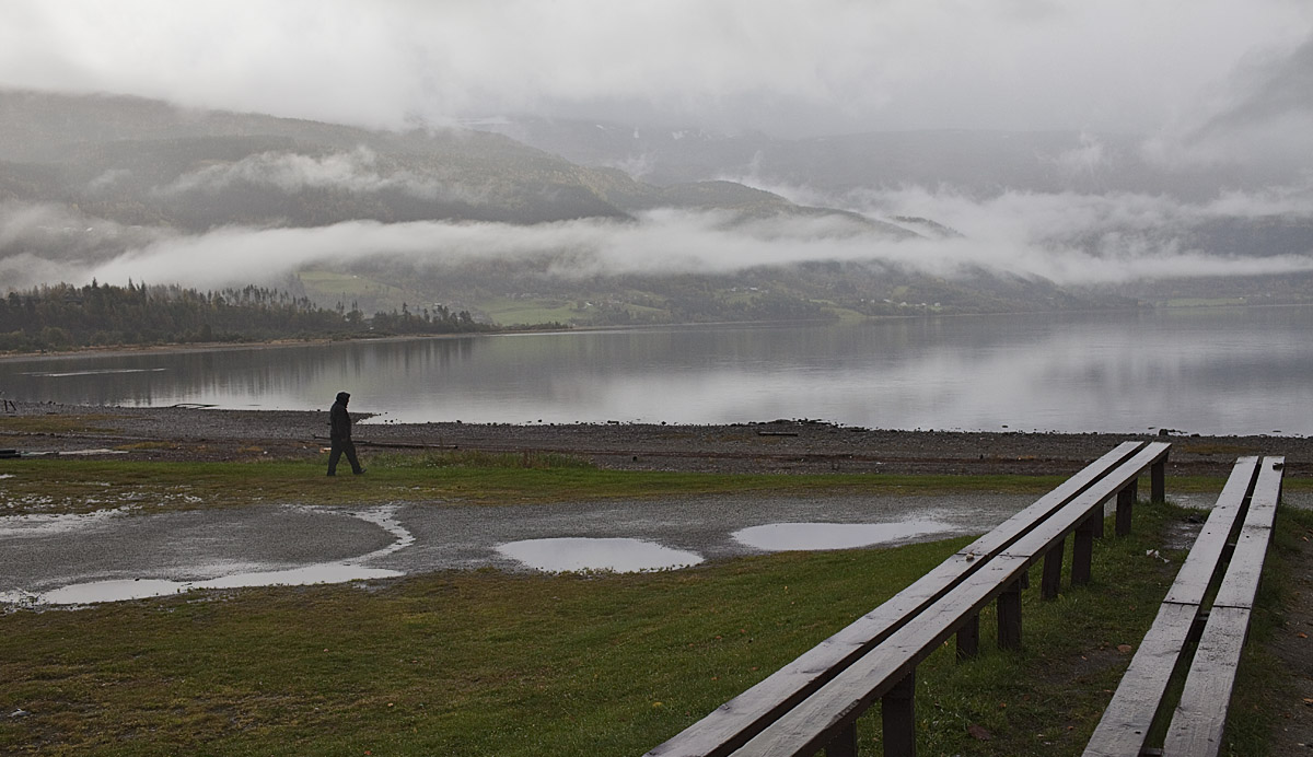 Bilder från Voss: Sjunde dagen, och den åttonde: Regniga dagar med molnbankar som klär in bergen runt Vangsvatn.