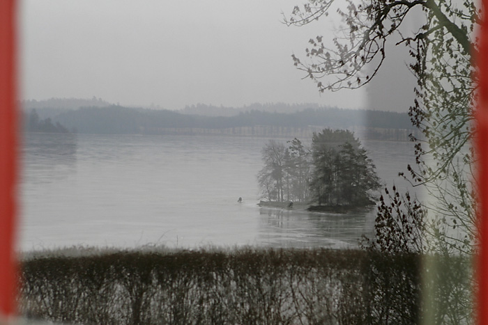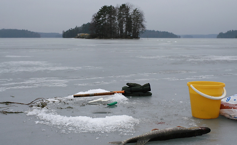 Helgen tillbringas i Sörmland, vid en av sjöarna i Båvensystemet. Grått och blåsigt och kyligt, trots att termometern pendlar kring nollan. Men 40 cm kärnis som lockar ut fiskarna på sjön.