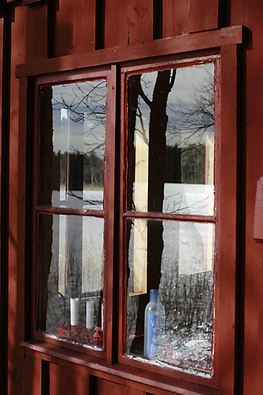 Så har isen legat i tre månader nu och speglat sig i bastufönstret -- men om bara två veckor är den borta. Så snabbt kan det gå! Det är varje år lika befriande att se detta ske.