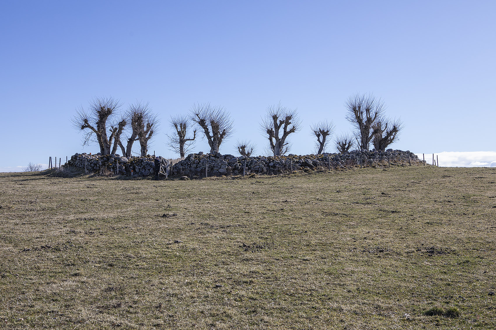 Ålleberg åker vi förbi, ofta flera gånger, när vi turistar i Falbygden. Idag blev det äntligen av att för första gången på många år åka upp på berget. Hade glömt det vackra landskapet och den storslagna utsikten från berget över Falbygden! Ålleberg är det enda av de västgötska platåbergen som forfarande har till största delen öppen mark uppe på hjässan. Så såg det ut tidigare på de andra bergen också, så hårt betade som de var. Linné vittnade om det på sin tid och så förblev det ut långt in på 1800-talet. Idag växer det skog på de andra bergen. På Ålleberg är det dels en del brukad åker, dels ett flygfält för segelflyg och sist men inte minst en vacker betesmark, där man röjt i vinter, så som man måste göra för att hålla marken öppen, såvida man inte har väldigt många djur på marken och kanske dessutom blandar in både får och getter.