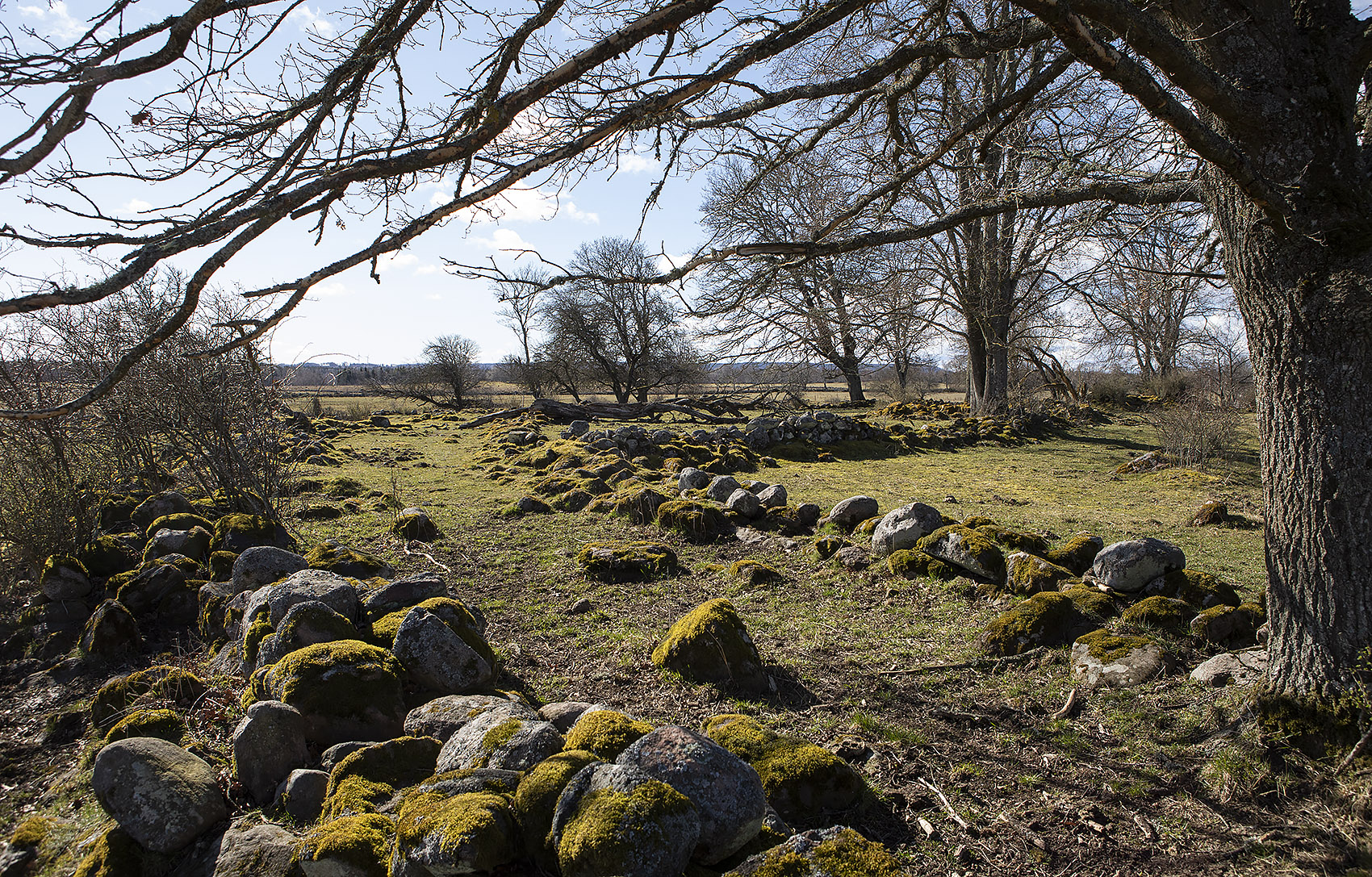 Nedanför Ålleberg låg en av de tidigare tre västgötska rundkyrkorna, Agnestad, där man idag enbart kan se de första murvarven av kalksten. Det var en liten, liten kyrka, där församlingens medlemmar fick tränga ihop sig stående under högmässan. Kyrkan tros ha övergetts i slutet av 1500-talet. Idag finns bara en av rundkyrkorna kvar, den i Skörstorp. (2019-04-01)