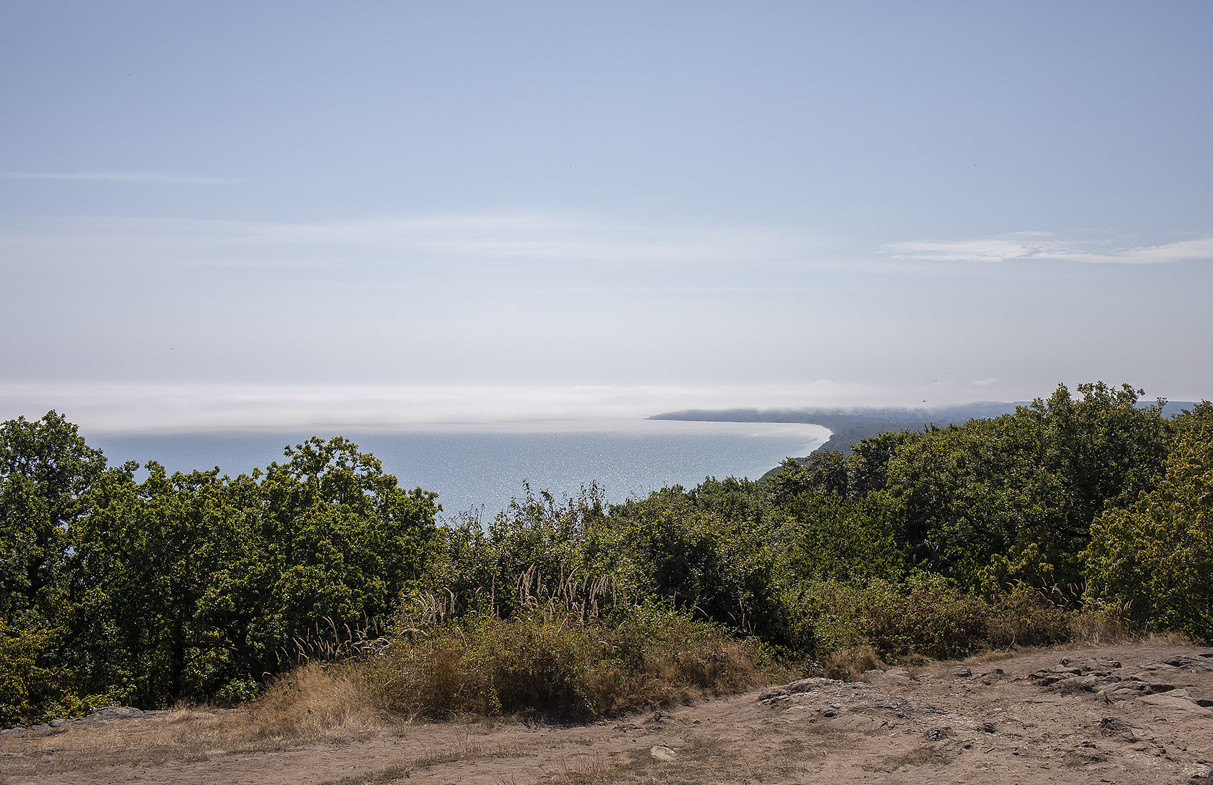 På månaden när för femtio år sedan reste jag genom södra Sverige tillsammans med en vän från Täby i hans Folka. Vi hade Carl Fries “Gammalsverige” och “Den svenska södern” som guideböcker och gjorde en roadtrip genom Västergötland, Småland och Skåne för att därefter landa på ett norskt fjällpensionat där dåvarande AKP-ml hade ett sommarläger; det var året för den första norska EU-omröstningen så mycket av diskussionerna kretsade kring den frågan i Norge den sommaren. Nu besöker vi Stenshuvud, andra gången för oss båda. Av mina minnesbilder och de få diabilder som jag tog 1972 är själva berget sig likt, i varje fall den magnifika utsikten över avenboksskogen med havsbukten nedanför. Nytt är det fina Naturumet med en informativ och lagom stor utställning.