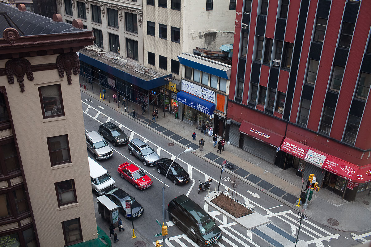 Landat i New York. Bild från hotellet: Broadway, som inte är så bred just här!