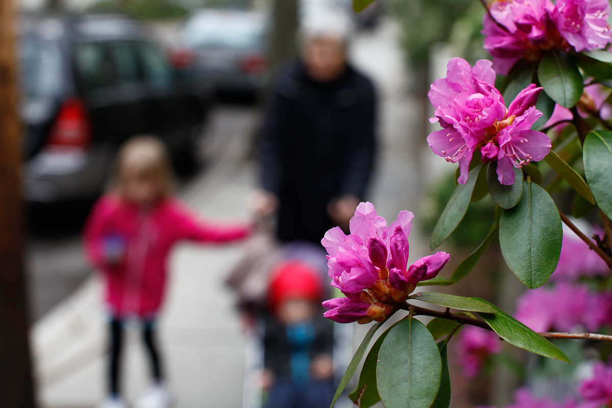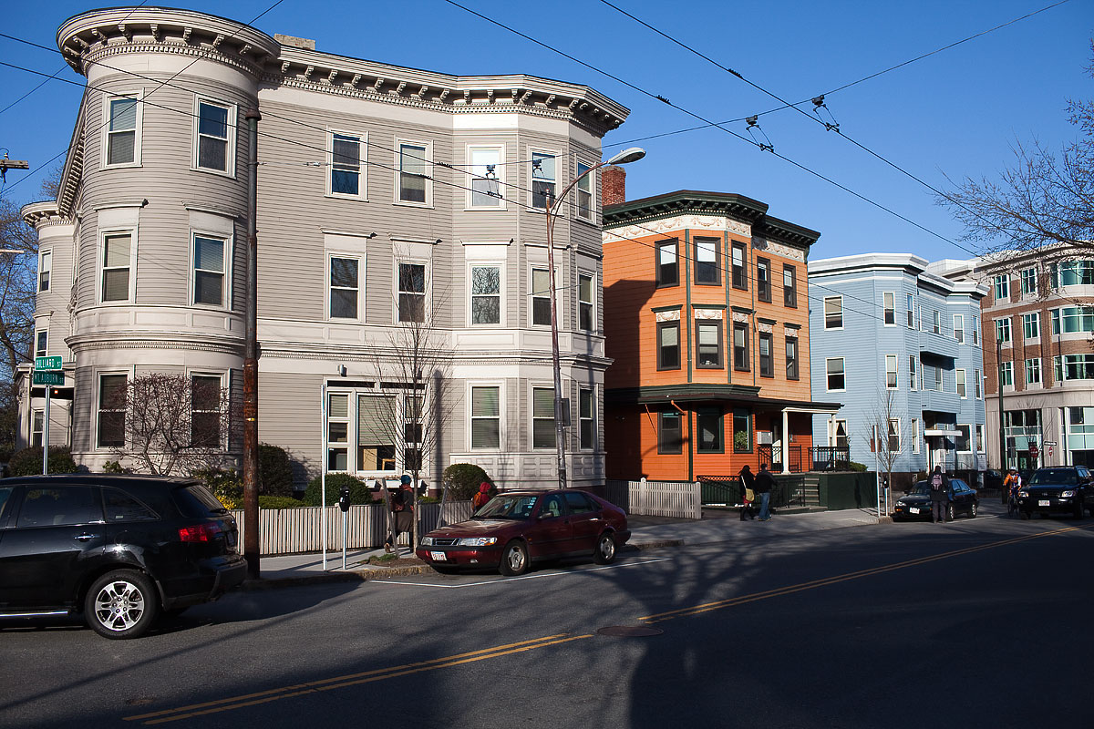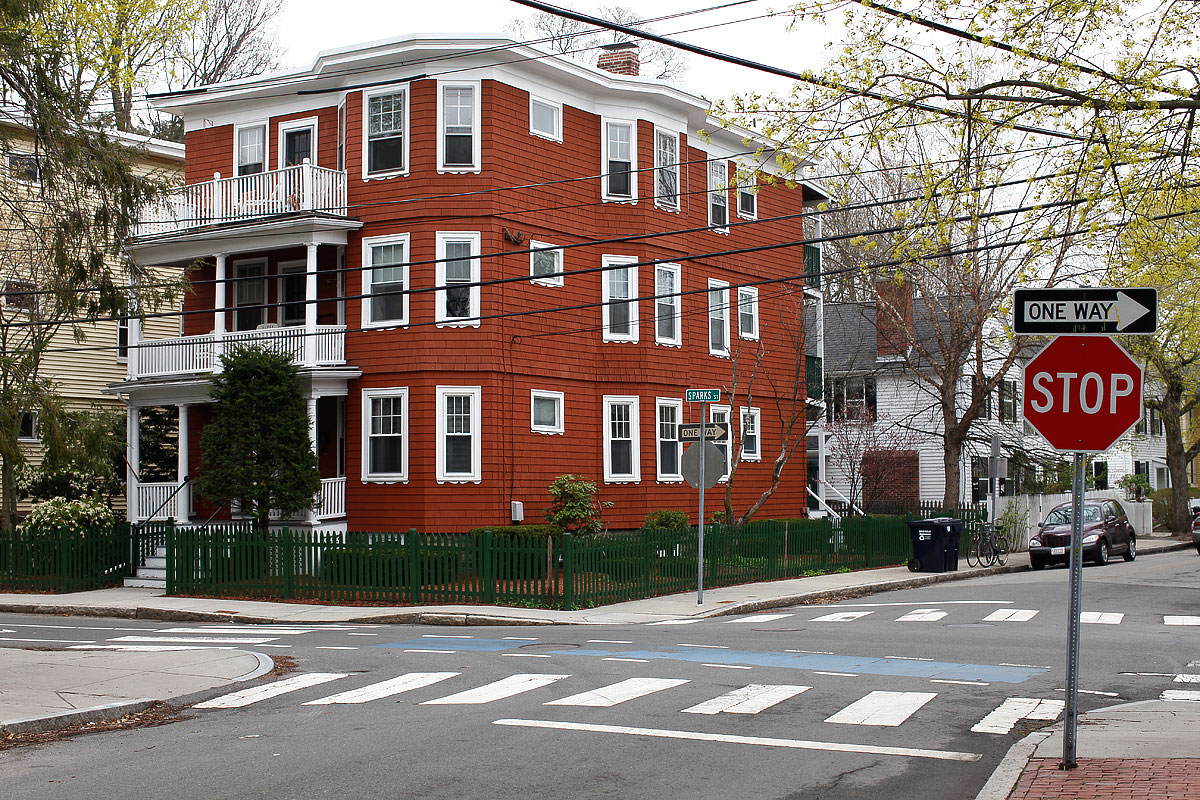 Bilder från Boston: Korsningen Sparks st - Foster st.En disig men skön förmiddag här på USA:s östkust. Mangoliorna blommar och de första rododendron längs gatan har slagit. Och på Charles River tränar roddarna. Det ser man sällan hemma. Men kanadagässen är desamma!