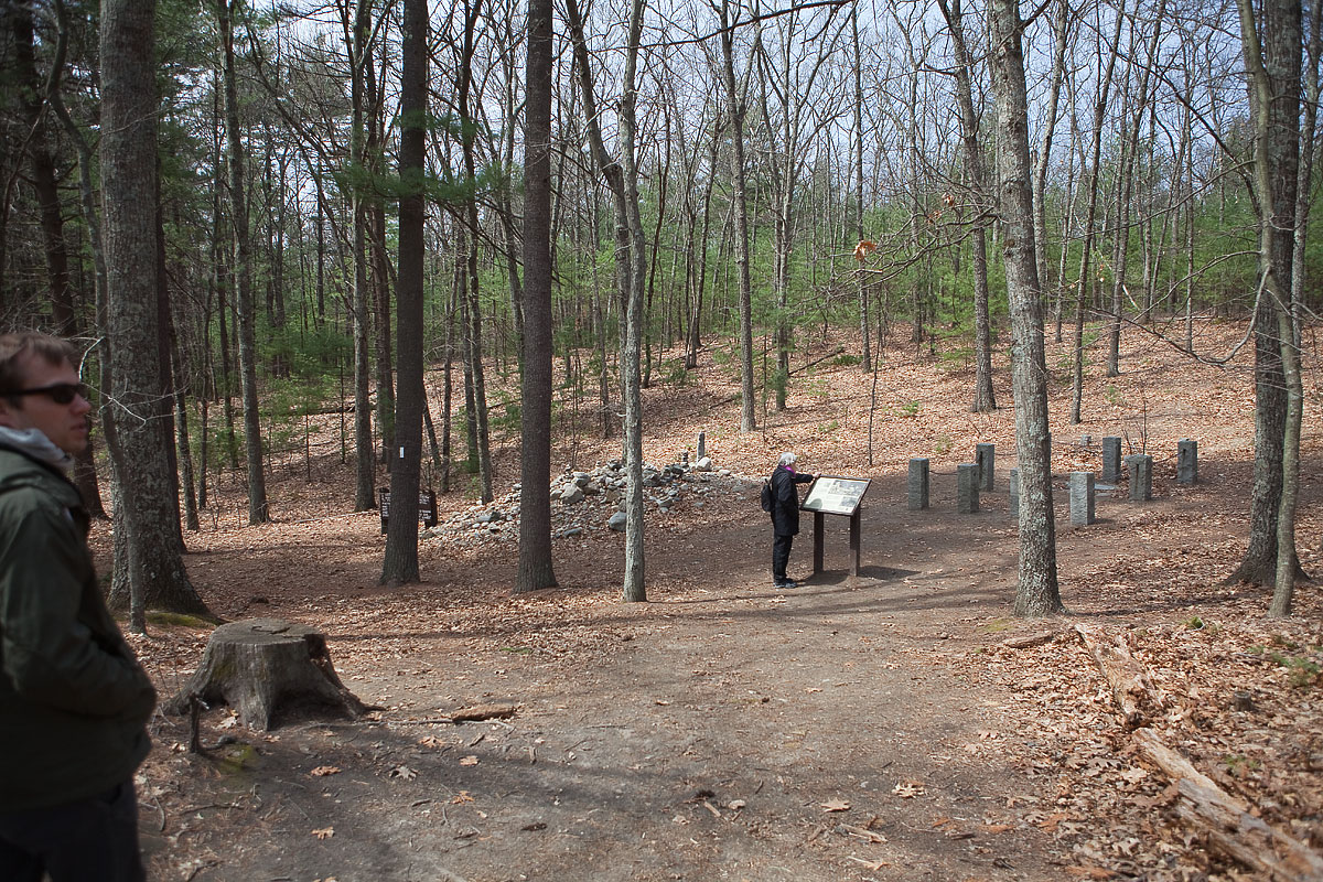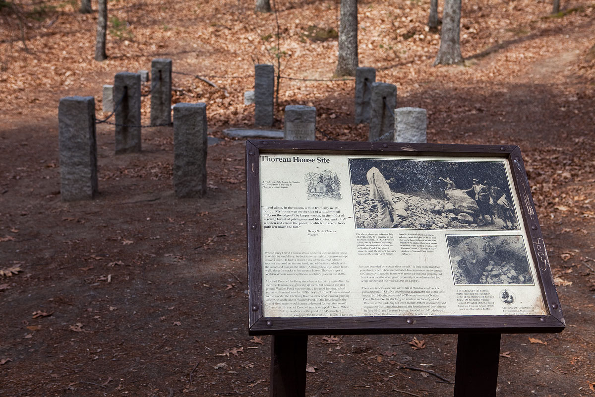 Här låg Thoreaus hus. Det revs några år efter att han bott här; det som återstår här på den ursprungliga platsen är en rest av skorstensgrunden.