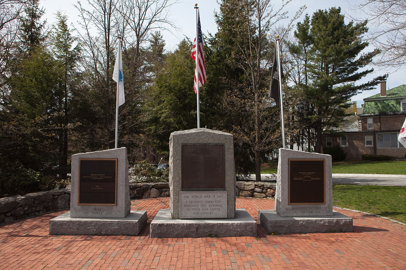 Bilden är tagen på Memorial Square i Concorde, ett litet samhälle några mil utanför Boston. På den stora stenen i mitten står namnen på de concordensare som stupade i andra världskriget. På stenen till höger en som dog i Dominikanska republiken 1965 och de fem som offrades i Vietnam 19961-75. På stenen till vänster namnen på tre stupade i Koreakriget 1950-53 och under dessa namnet på den Brian M. McPhillipps som än så länge är ende som har dött i det pågående Irakkriget. Afghanistan har än så länge inte kommit upp minnestavlan, men det lär inte dröja så länge till.