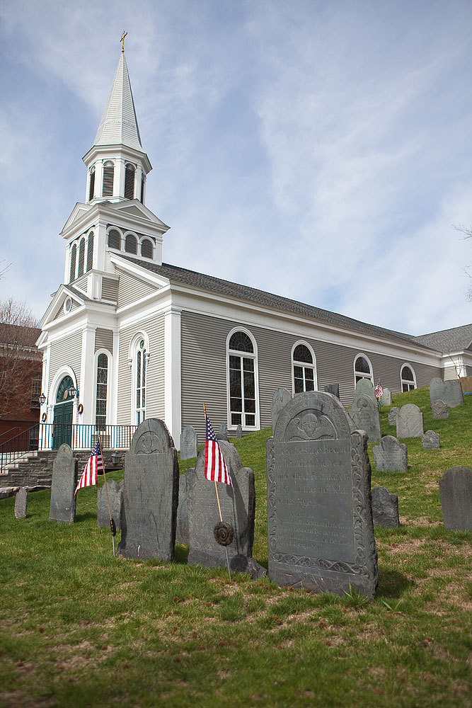 En av alla kyrkor i Concorde, med en vacker begravningskulle och gravstenar från 1700-talet och framåt.