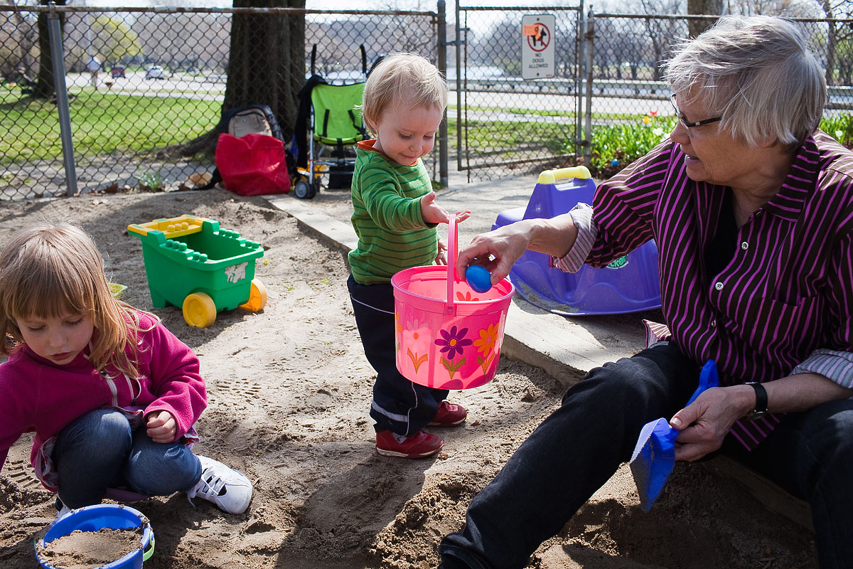 ...och i lekparken lägger frivilliga ut påskägg för barnen att leta upp.