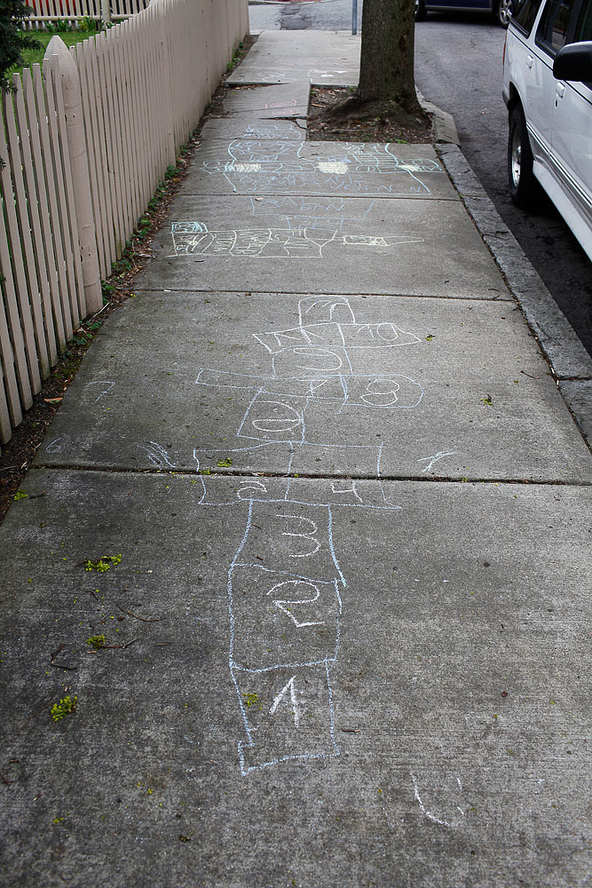 Idag kom äntligen våren till Boston: Sol och drygt 20 grader varmt. Dags att rita upp en hage på trottoaren.