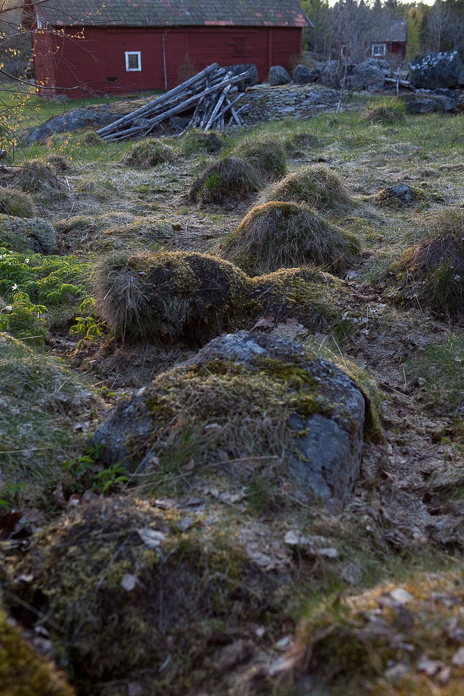 Jag gick till ängen där kattfötterna blommar, tidigt på morgonen. Hoppades att få se vargen ... men hörde bara tranorna skrika. När jag kom närmare, där jag tyckte mig ha hört dem, var de spårlöst borta. De är så de stora fåglarna, mästare på att gömma sig. Senare på dagen fick jag höra av Jägaren att vargen hade setts samma morgon några hundra meter därifrån! I hästhagen ... 2011-05-28.