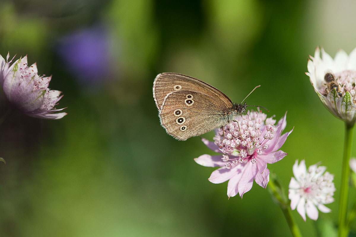 Skogsgräsfjärilen kläcks bara udda årtal här i Mellansverige och i år verkar den få ett bra år. Idag sågs den i alla fall litet varstans kring torpet, den är inte lika bunden till de tre fjärilsrestauranger som dominerar hos oss: kungsmynta, rödklint och kärr/åkertistel.