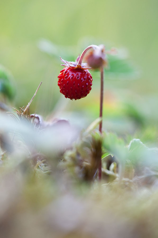 Sommarkväll vid Roslagstorpet: Gräsklippning, säsongens sista svarthättesång, egenodlade jordgubbar, MYGG, kvällsdopp, blommande gulsporre. 2011-07-05.