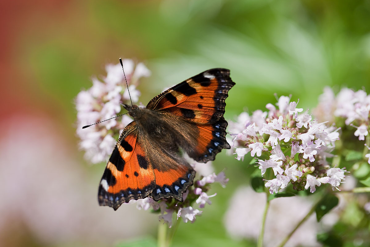 Nässelfjärilen är en av de mest kända, och vackraste av våra fjärilar. Här har den slagit sig ner på kungsmyntan vid Roslagstorpet. Ett nykläckt och oslitet och därför extra vackert exemplar.