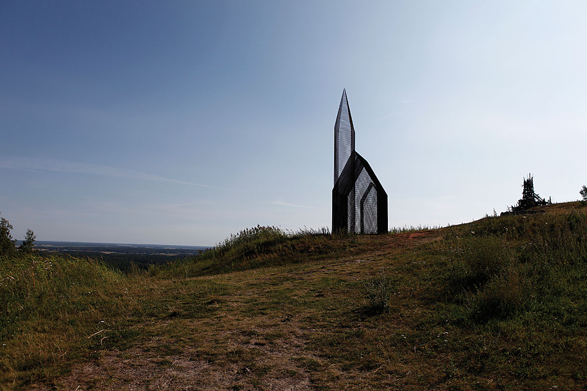 På rundresa i (norra) Sydsverige. Idag morgon med lätt regn i Göteborg. Igår kaffepaus på Kvartorpshögen söder om Kumla med sin spännande skulturpark. Jag tyckte mest om Kent Karlssons katedral, "Absit omen". 2011-08-06
