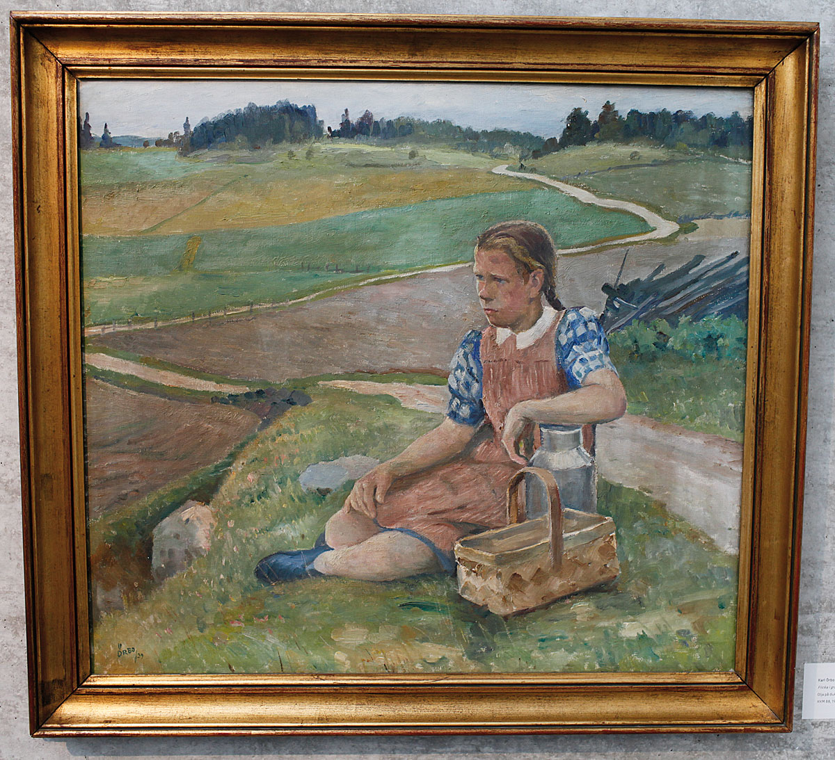 Bilder från Roslagen: Flicka i gräset, motiv från Roslagen, 1939. Målad i olja av konstnären Karl Örbo (1898 - 1958) och gåva från konstnären till museet 1940. Tavlan hänger på Kalmar Konsthall tillsammans med andra verk ur museets samling samt konst från det sena DDR (!) och skisser till hedersgåvor från Orrefors glasbruk. "Upprätthållande av tingens ordning - modernismens estetik inom kommersialism, nationalism, elitism och socialism" heter den intressanta och tänkvärda utställningen.