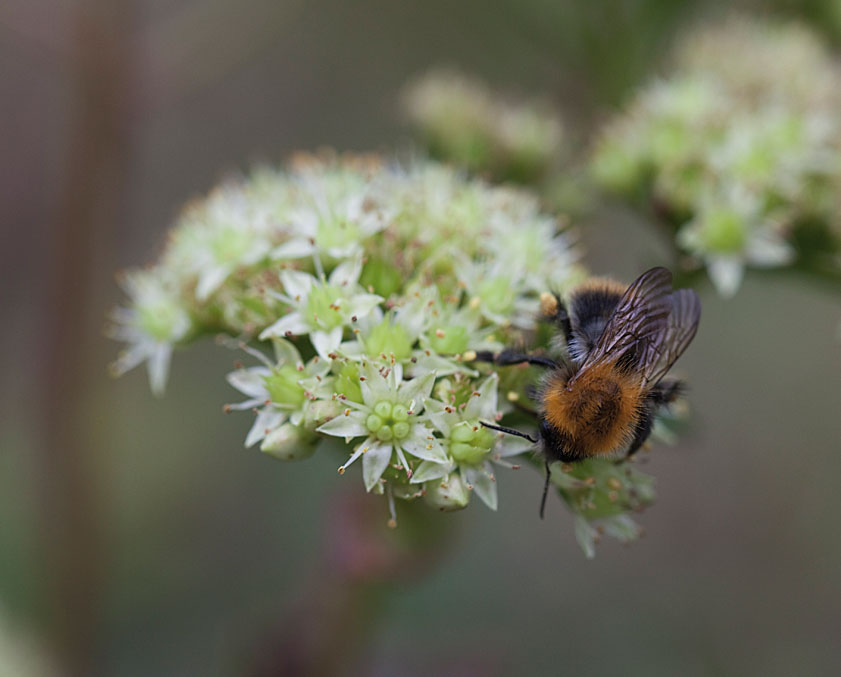 Bilder från sensommaren: Kärleksörten blommar, och åkerhumlan (?) låter sig väl smaka.. 2011-08-22