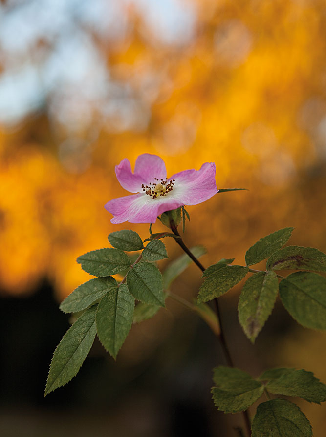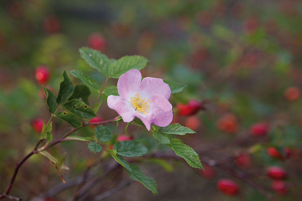 Bilder från Roslagen: Nyponrosen blommar den 26 oktober mot en fond av gulnande löv! 2011-10-26