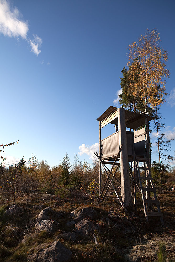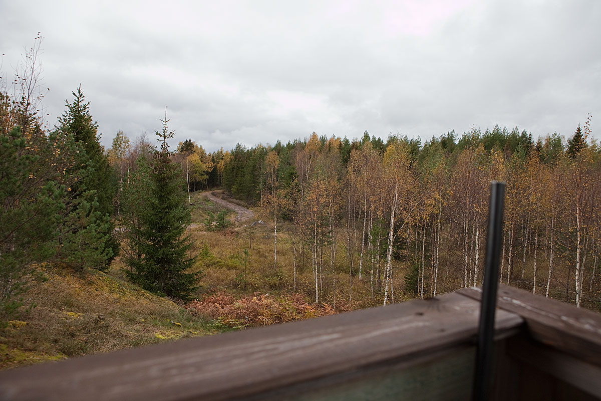 Utsikt från passet andra dagens jakt. Ett öppet pass med stor himmel och mycket fåglar - nötkråka till exempel - och andra ljud. Men inga älgar syntes till! 2011-10-11