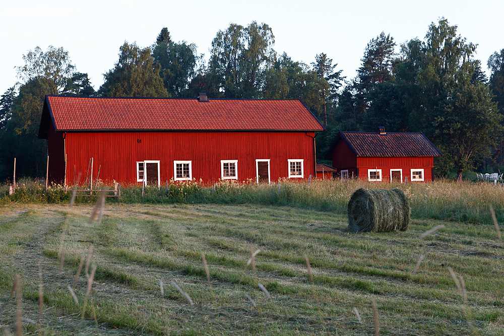 En bild från igår: Den Canonröda ladan i tidigt morgonljus.