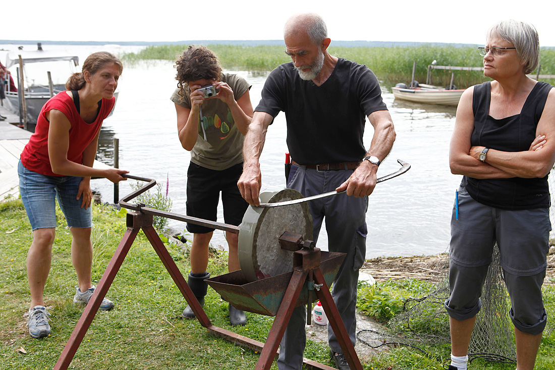 Semesterbilder: Det gäller att veta hur en slipsten ska dras. På liekurs på Tåkenön i Hjälmaren. Leif Rooth demonstrerar. Vilken härlig dag!