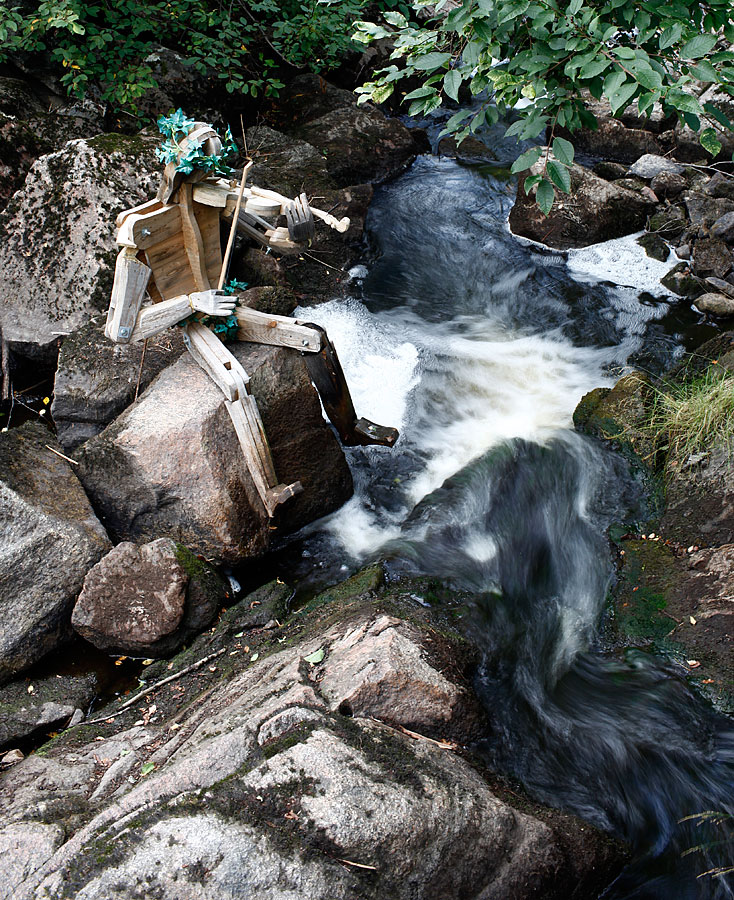Semesterbild från igår: På vernissage i hembygdsgården i Bergshamra, strax söder om Norrtälje. På väggarna fin konst, på scenen tung rockmusik och i Bergshamraån spelade (Bengt Norlings) Näcken...