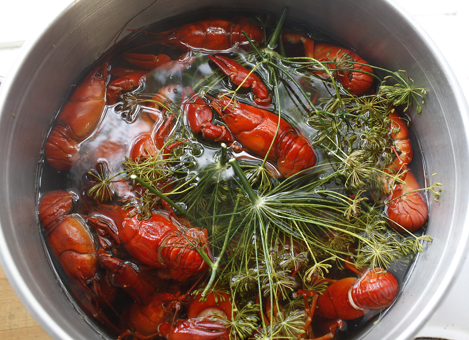 kräftfiskepremiär. I alla fall enligt den gamla tideräkningen, idag gör man litet som man vill. Jag växte upp vid en fantastisk kräftfiskesjö i Roslagen. Då, när jag var barn, var den 7 augusti, första kräftfiskedagen, en högtid som endast överträffades av julafton. Den kvällen slapp vi gå bort med korna efter mjölkningen. Det var mycket folk runt sjön, på bergen lös eldar och överallt glimmade det av ficklampor i augustimörkret. På bara ett par timmar hade vi håvat upp minst ett kilo kräftor och än fler gick i mjärdarna. År efter år fångade vi kilovis med kräftor, som vi sålde till stockholmarna och till Fiskarboden inne i Norrtälje. Jag minns aldrig att vi själva åt några.